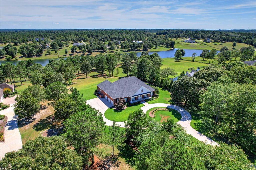 Atop the main ridge of the private, gated equestrian community of Kings Ridge sits the stunning, custom home at 341 Chestnut Brown Court. Perfectly situated to catch the breeze and enjoy the tranquil views of the pasture area and stocked pond below. With over 3800 square feet and 5.4 acres, this home has ample room to stretch, live graciously, and has all the room you need for family - both the two-legged and four-legged kind! No corner was cut in the construction of this home. Beautifully kept red-oak flooring, 9' flat ceilings throughout, 10' coffered ceilings in the dining and office, and 12' flat ceilings in the great room! The foyer has a striking barrel ceiling. Excellent woodwork and molding throughout the home. The split floor plan has the owners' suite on one side of the home and guest rooms share the privacy of their own hallway on the other side. Granite counters throughout and ceramic tile in all the baths. A bonus room above the 3-car garage could serve as an office, walk-up storage, craft room, or man cave! The owners' suite with its oval trey ceiling has his and hers closets with ample space, dual vanities, and large, tile walk-in shower. The kitchen, the heart of the home, is open to the living room with gas fireplace and also to the breakfast area with views of the pond and pasture. The generous island, custom cabinets, and stainless appliances make cooking and entertaining effortless! This is an Energy Star home with spray foam insulation, tankless water heater and low-E windows. Between the luscious grounds and the pond are roughly 3 acres in grass with shade trees that could easily be fenced for paddocks. Come see this wonderful home for yourself!