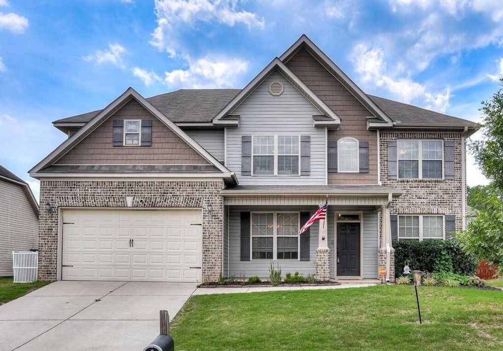 Wonderful two-story home built by Faircloth, only minutes to I-20! Formal dining room with coffered ceiling and office with french doors off foyer. Hardwood floors, arched openings and heavy crown moldings throughout all main living areas. Spacious great room with lots of windows and fireplace. On trend lighting and eat-in kitchen with island, glass backsplash, granite counters, coffee bar, walk-in pantry and stainless steel appliances. Guest bedroom and full bath on main level. Owner suite up with fireplace and sitting area as well as luxury bath featuring a corner soaking tub, double sinks, granite, tile floors and separate shower with glass door. Three bedrooms, a full bath plus a large flex space/media room complete the upstairs. Flat, privacy fenced rear yard with covered porch, storage shed and playground area with playset that conveys. SELLER ACCEPTING BACK UP OFFERS!
