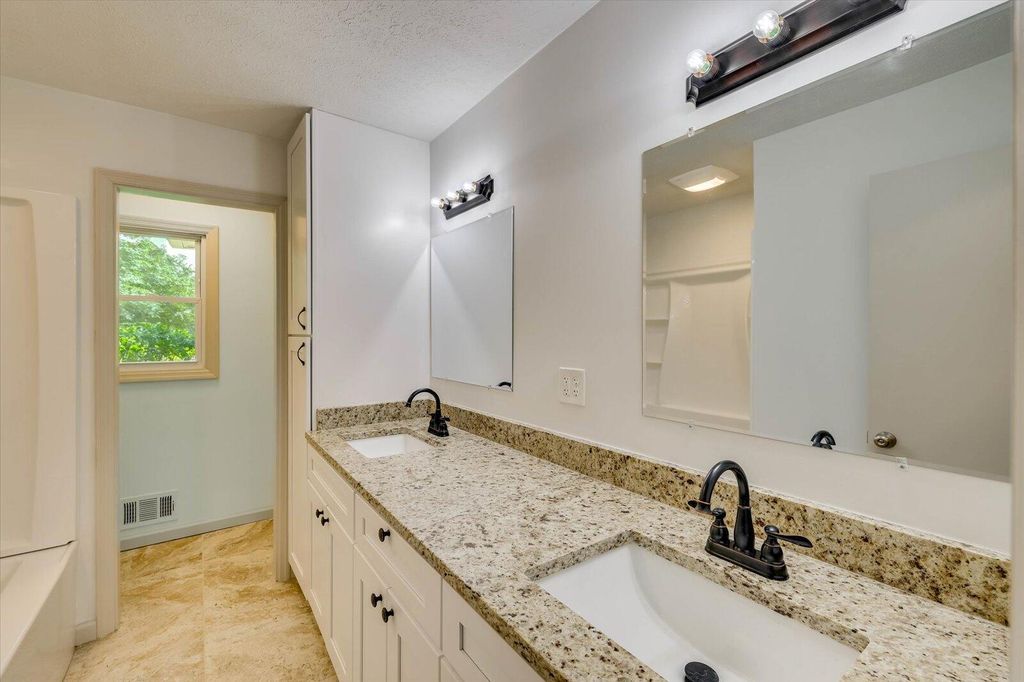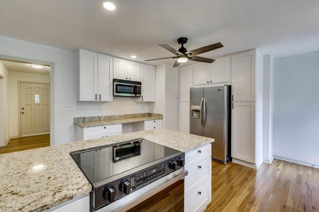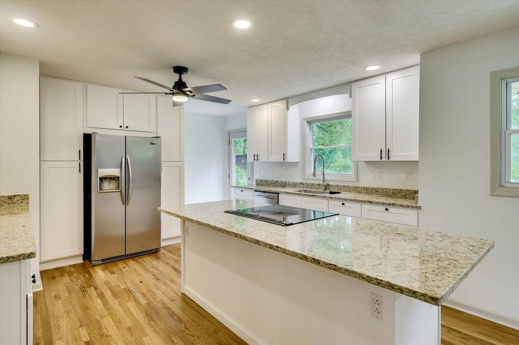 Discover your perfect home in this skillfully remodeled 4 bedroom, 3 bathroom brick ranch, nestled on almost an acre lot! This beautiful residence effortlessly combines classic charm with modern elegance, featuring a new inviting open-concept layout and stylish updates throughout. Step inside to discover a natural light-filled interior where the spacious kitchen seamlessly flows into the living and dining/lounge area with an inviting brick fireplace. This creates an ideal setting for everyday living and entertainment that offers a warm and welcoming atmosphere. Gleaming wood floors extend throughout the home, adding a touch of sophistication and continuity. The spacious kitchen is a chef's delight complete with stainless steel appliances, ample cabinetry, generous granite countertops, and an island that serves as a functional cooking space. Whether you're cooking a gourmet meal or enjoying a quick bite, this area is sure to impress. The second master with an optional private exterior entrance has many possibilities and is a perfect retreat for guests, extended family, VRBO/Airbnb, or a home office. A full bathroom with a walk-in shower and laundry room area with a new washer and dryer complete this space! Outside there is a large two-car covered carport with convenient overhead storage. The expansive lot comes complete with a patio where you will be in a beautiful, lush backdrop for outdoor enjoyment and relaxation. The grounds offer endless possibilities for gardening, recreation, or even a future pool and outdoor kitchen oasis. Schedule a visit today and experience everything this one-story home has to offer!