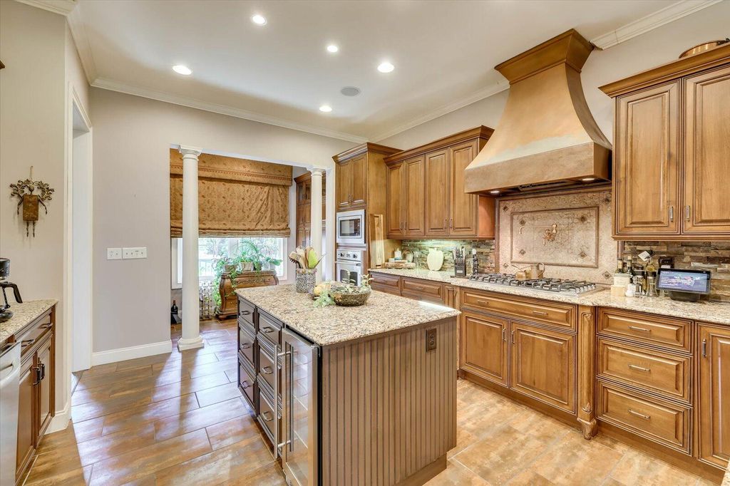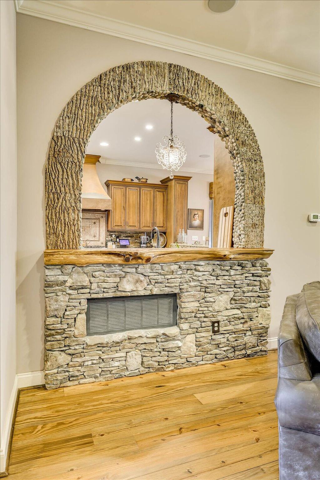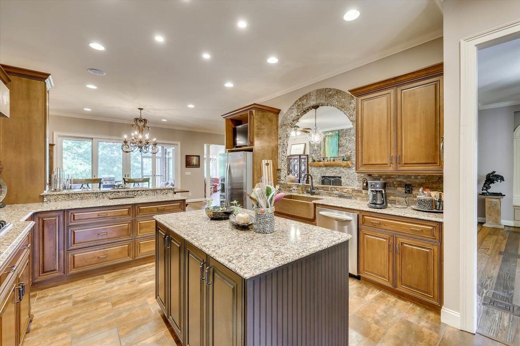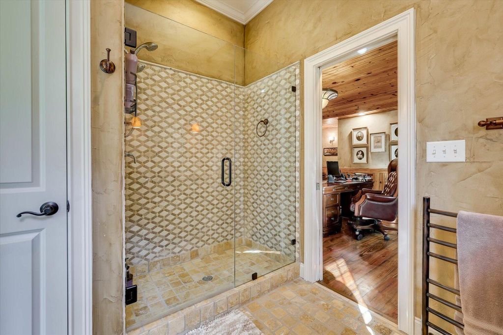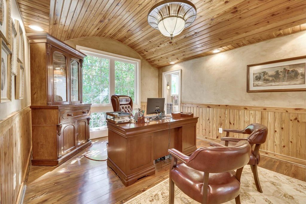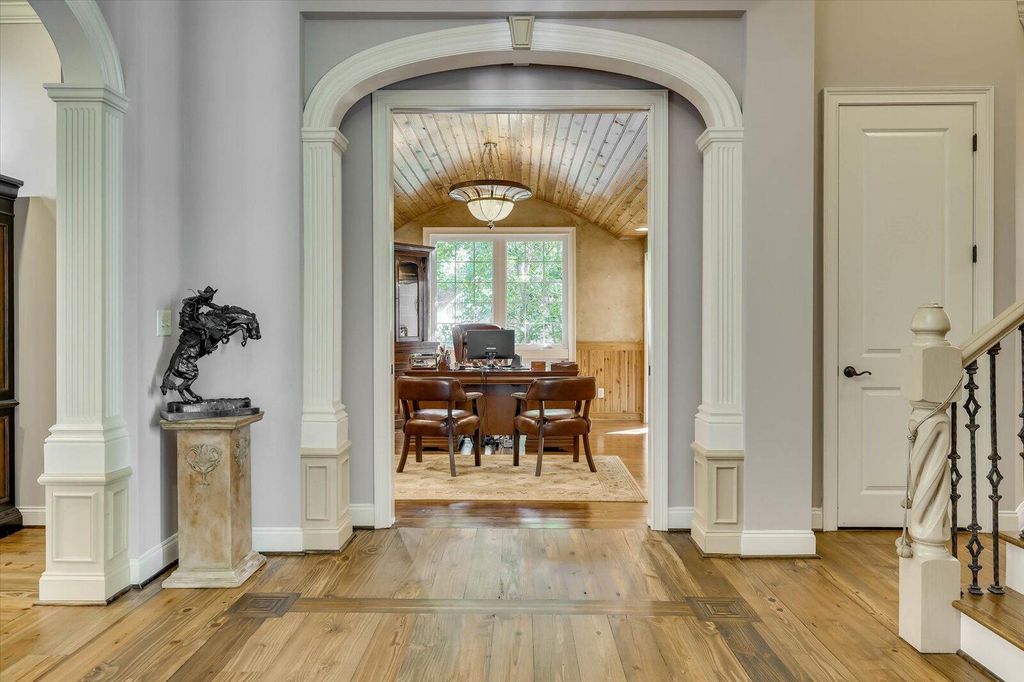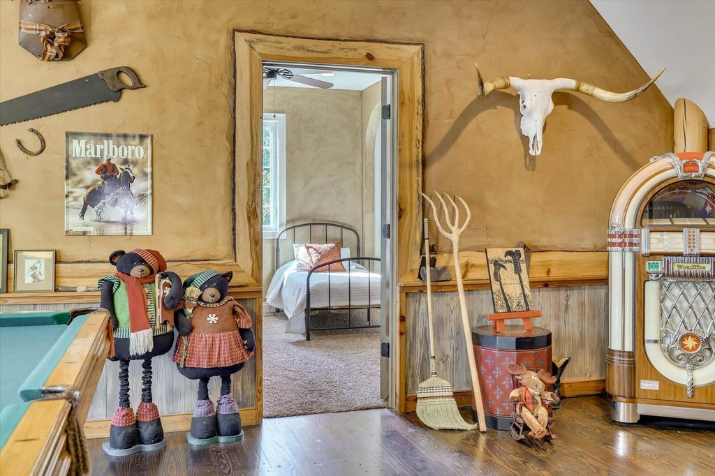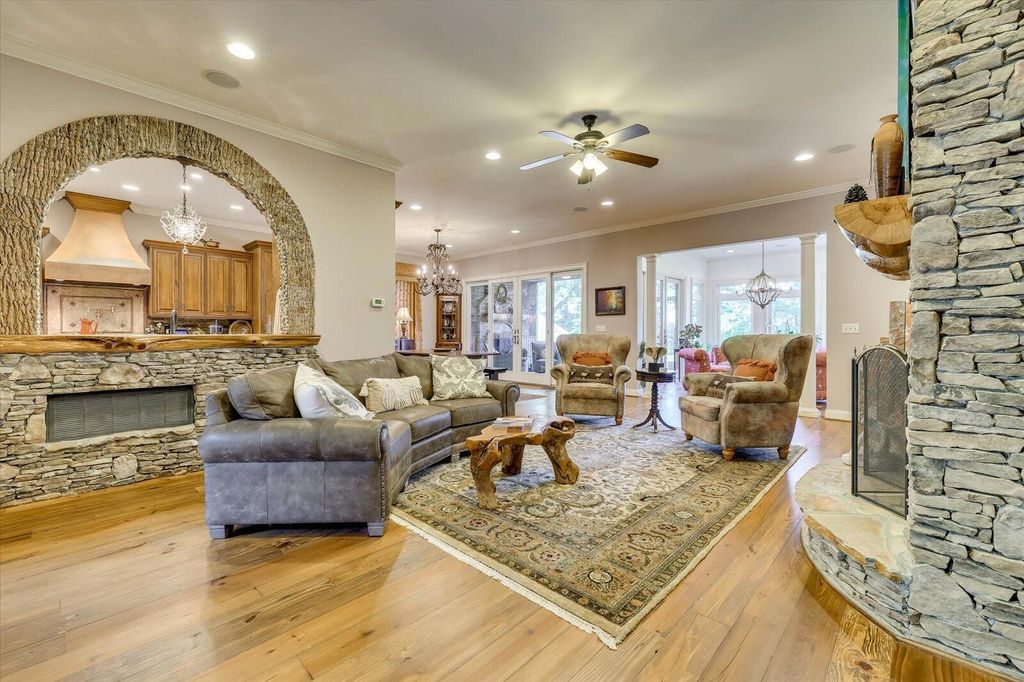 Prepare to be impressed by this unassuming gem! The beauty of this home lies in the timeless aura and in the integrity of the construction. You will be amazed by the impeccable details of every room...the HW floors are over 100 years old! A serene backdrop with stunning vistas of #8 fairway of the Nicklaus course is the setting. The open plan provides ease of entertaining and the Chef's kitchen is adorned with nature's bounty. Bark from a poplar tree, North Georgia stone, and hammered copper bring this kitchen to life, while Viking appliances, a 6-burner gas cooktop, copper pot filler, hood, sink, and custom cabinetry make it as functional as it is beautiful. The screen porch offers a wood-burning fireplace handcrafted with vintage brick, bark, and a cedar mantle. The porch and the sunroom enjoy sweeping golf views. The owner's suite will not be outdone. It boasts a coffered ceiling and bespoke bath with a copper tub, his/her vanities with vessel sinks, and an oversized walk-in stone/tile shower. The handsome office will get your attention with the heart-pine barrel ceiling and wainscotting. It offers an attached full bath that is shared with the guest room. A one-of-a-kind staircase with hammered steel leads to more surprises...a home theatre, small gym, a western-style game room complete with a pool table and dance floor, a full bath, and a bunk room for the kids (or guests that decide to stay)! Also, the enormous attic could be converted to add an additional bedroom or two and a bathroom. The home is guaranteed to leave an impression! Owner is a licensed agent!