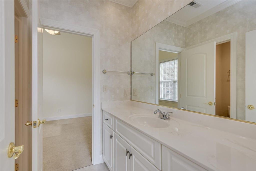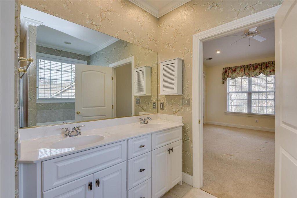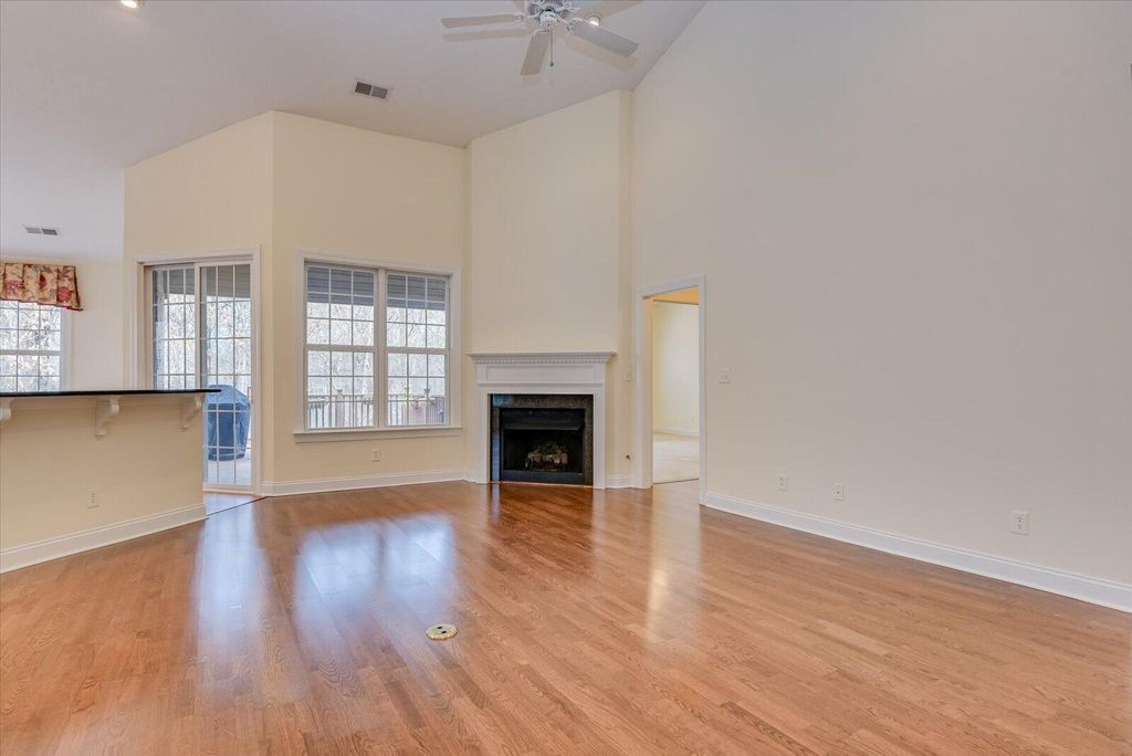 The Cottonwood Creek neighborhood is located inside Woodside Plantation. This brick ranch offers 3 BR's/2.5 Baths plus a bonus room all in a wooded setting, The open floor plan has cathedral ceilings in the dining, kitchen and living room with a gas fireplace. The kitchen features stainless appliances, granite counters, a snack bar and breakfast area that offers access to the covered deck. The primary suite opens to a private bath with dual vanities, large tub and walk-in shower. Off the living room are double French doors open to a den or office area. In addition, you have a large Flex space and walk-in attic for additional storage. The deck has a large area under roof and extends beyond with wooded views. All of the maintenance has been done for you. It includes a new roof, new tankless water heater, new HVAC system, new disposal, gutter guards, and the interior has been freshly painted. There is additional storage under house. Membership to either club is optional! This neighborhood offers easy living with it's $270/month HOA fee that covers lawn/driveway maintenance.