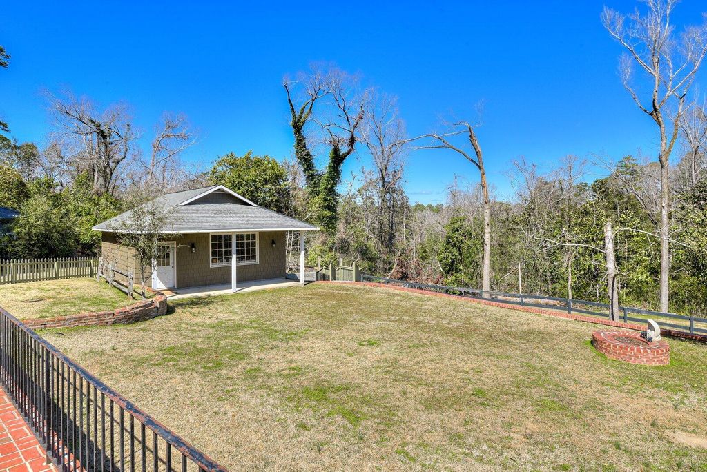 Rare opportunity on Berrie Road! Enjoy modern living in this gorgeous Olde Aiken home! This 3 bedroom, 3.5 bathroom, 1887 bungalow is situated on 1.71 acres and is steps away from Hitchcock Woods and Palmetto Golf Club. As you follow the winding shared driveway from Berrie Road, you will be greeted by a charming brick wall surrounding the private courtyard and covered porch that leads into the dining room and kitchen. The owners' suite also has access to the courtyard. From the moment you enter this home, you are welcomed by soaring ceilings, exposed brick, warm hardwood floors, incredible woodwork and views of the woods from every vantage point. The owners' suite has a kitchenette and laundry room leading to his & hers custom closets. Enjoy a private balcony leading out to the backyard. The property features a 2 stall barn with water & electricity. There is also a 2 car detached garage.