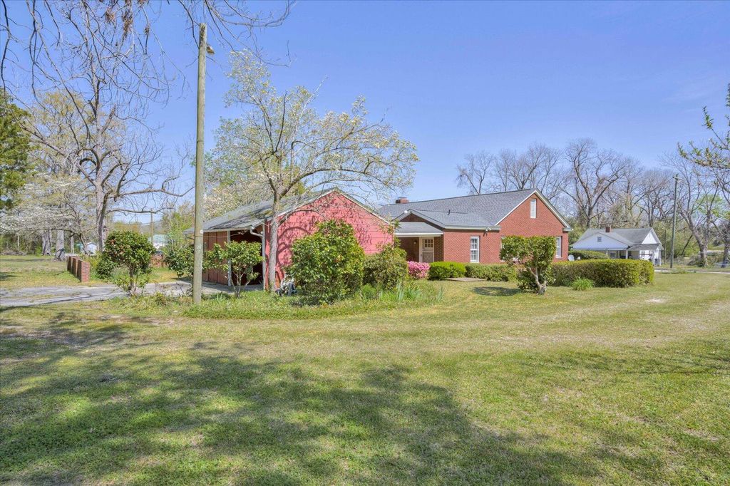 NEW PRICE! This one story all- brick home is truly a gem! Obviously well maintained and loved, it offers a combination of original features as well as updates. A light-filled great room greets you from the front entrance. Of note is the fireplace, with original mantle and millwork; it's now featuring gas logs. The adjoining dining room can easily accommodate friends and family with enough space for ''elbow room''. THE PINE PANELED DEN COULD EASILY BE CONVERTED TO A THIRD BEDROOM! The kitchen has plenty of work space, newer counters and sink, cooktop, dishwasher, newer built-in double ovens, pantry. A breakfast nook completes it. Accessible from the kitchen is the sunroom, with its five sliding patio doors, that offers panoramic views of the stunning landscaped yard. Heated and cooled, it offers even more living space to enjoy! Spacious primary bedroom with view of the front of the property. Second bedroom leads to hall, storage closet and a recently renovated hall bath; tile floor, shower with seating, new toilet, vanity and sink. 2nd bath w/ tub and shower, tile walls and floor. Convenient laundry/utility/mudroom leads outdoors. An attached covered brick walk leads to a walled carport with a 13'x19.5 work room. Beyond you'll view an inviting and glorious back yard and brick courtyard abound with blooms, azaleas and camellias, dogwoods, pecan, fruit trees, pines, indicating years of work and dedication. Your very own private sanctuary!