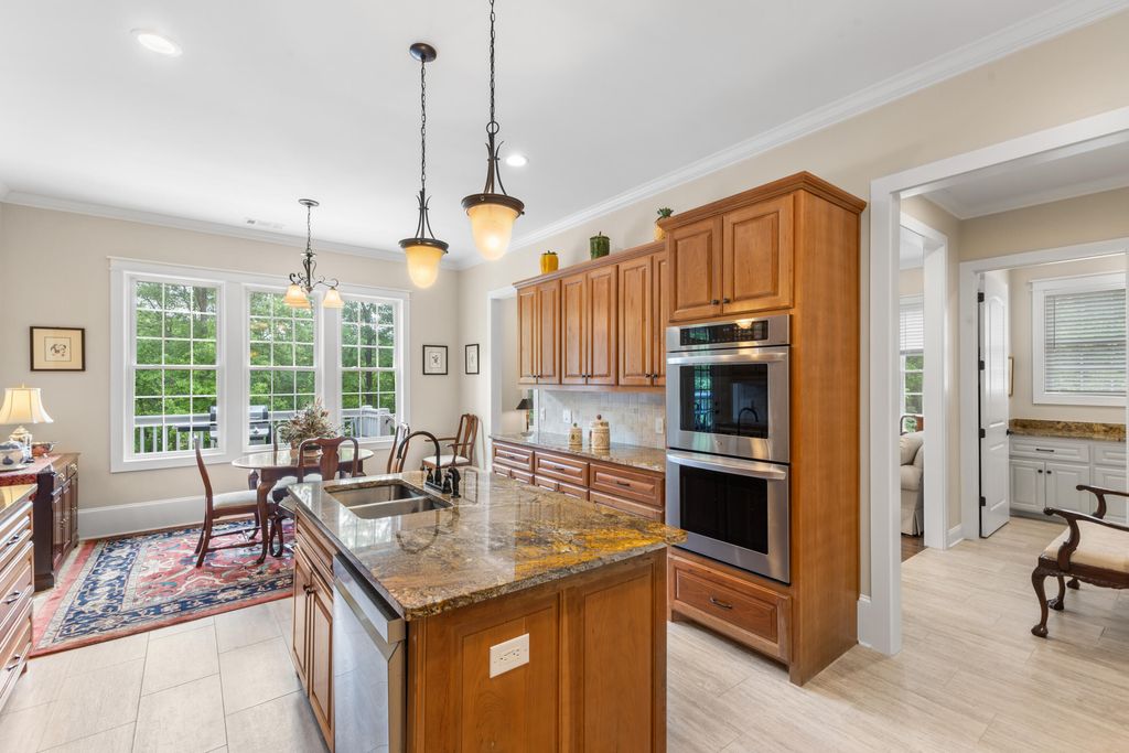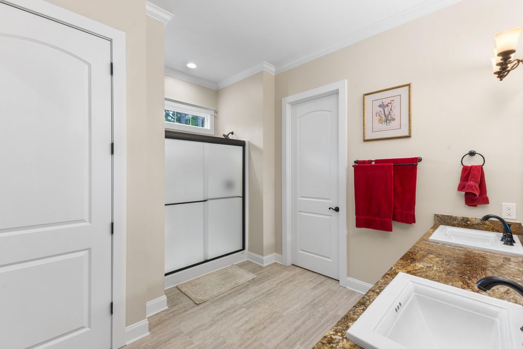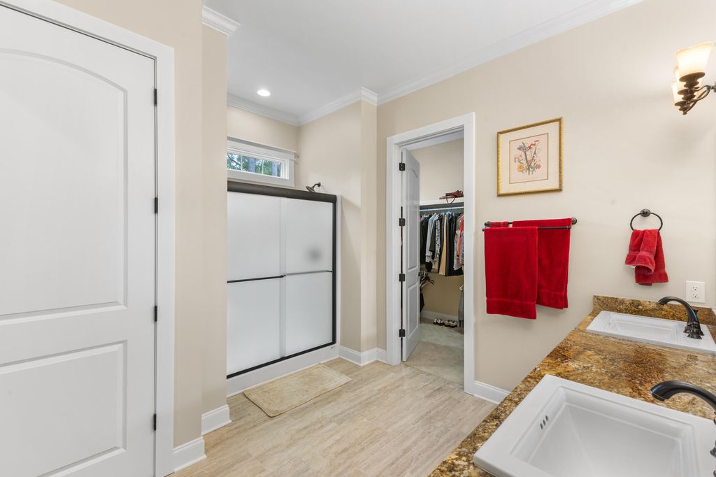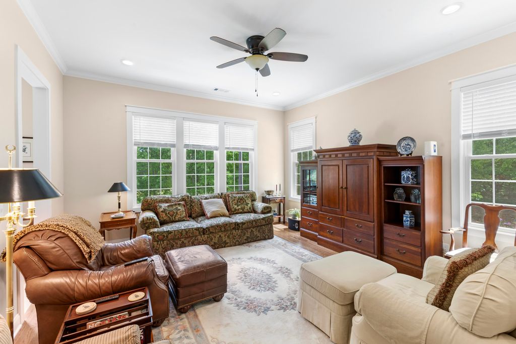 MOVE IN READY one story ranch with bonus room. As good as NEW! Looking for a home to enjoy gracious, spacious living, exquisite detail and superior construction? Welcome to 2085 Cardigan. This custom home, built in 2023 is a one story ranch with bonus room. Enter through the wide front entry and step into the foyer. You'll immediately view exquisite features such as 10 and 12 feet smooth ceilings, classic crown molding, tall transom windows, hardwood floors, and picture frame column accents. The living room displays a distinctive one-of-a kind limestone hearth 42'' fireplace. The large dining room will be the heart of your gatherings, and emanates casual elegance. A cook's dream kitchen features granite counter tops, gas cook top, large island with sink, timeless cherry cabinets - well designed with a combination of cabinets and drawers, double ovens, and a pantry. The wide, windowed breakfast area provides views of the back deck, yard and golf course. There's a comfortable family room/den for your relaxation. The primary bedroom is classically designed, featuring transom windows for natural light. The roomy primary bath offers two deep walk-in closets, double sinks, linen closet, large shower and water closet. Two additional bedrooms, a full bath, and 6 x 12 laundry room (w/ cabinets, and plenty of counter space) complete the first floor. Ascend to the second level to a 450 sq ft bonus room/4th bedroom, full bath, a 6 x 9 flex room, and walk-in partially floored attic. For outside enjoyment, theres a 12 x 15 screened porch, a grilling deck and a lower level patio for outside dining. Under the home is stand-up crawl space with an outside entrance and a partial concrete slab for workshop or storage. This stately home is perfectly placed on a 9/10 acre golf course lot with a tree separation for privacy. Young landscaping, professionally completed, will enhance the 9/10 ac lot through the years. Cedar Creek Development is a resort style community with pool, tennis, pickleball, golf, walking trails, nature trails, mini parks and ponds. County taxes only.