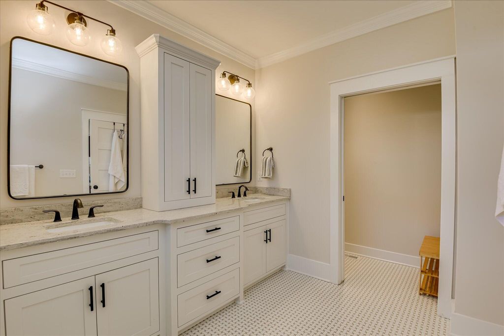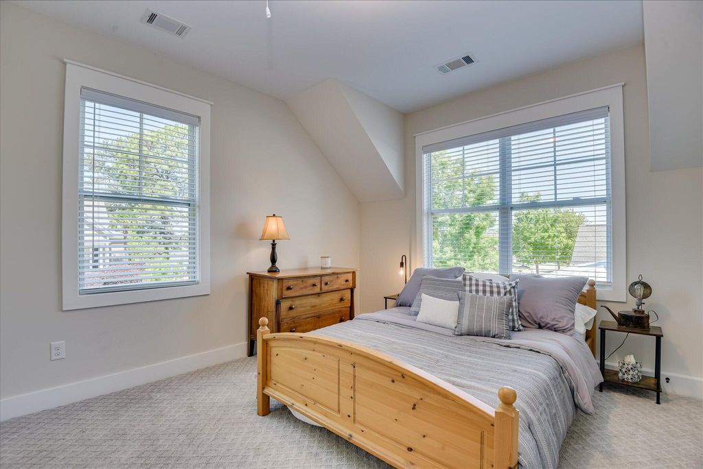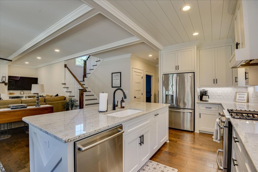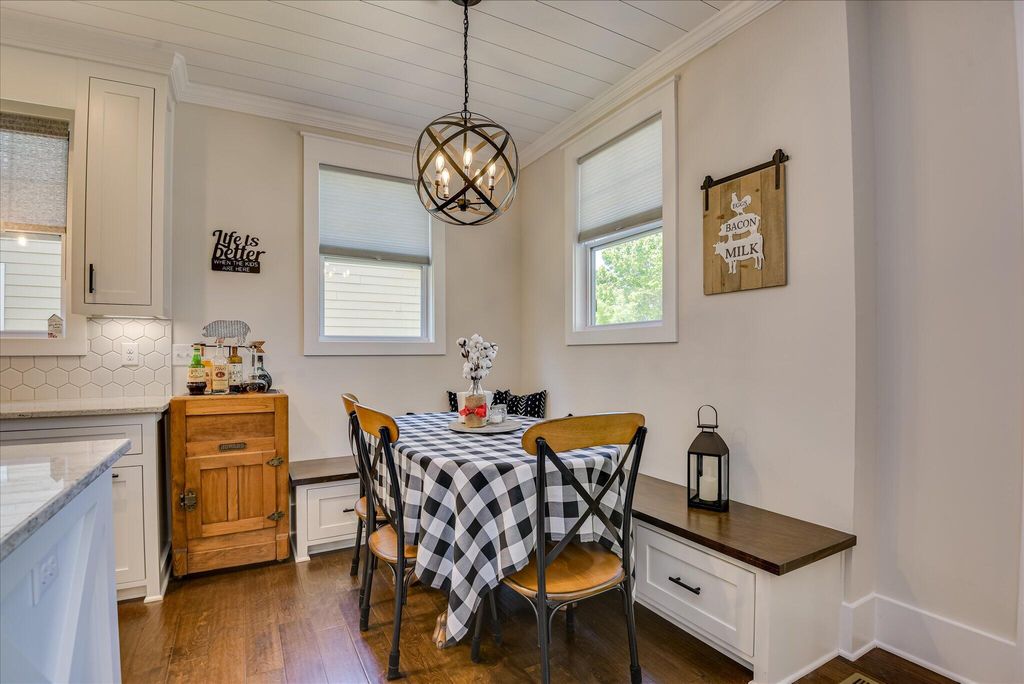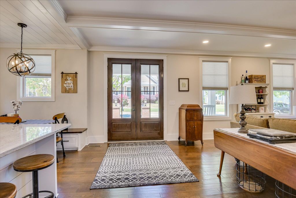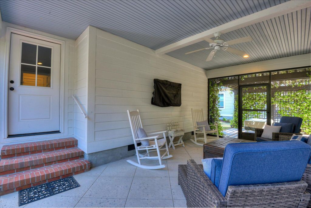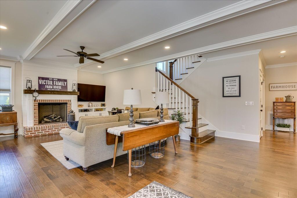 Welcome to this beautifully designed, modern bungalow nestled in the heart of Colleton Park. This home offers style, comfort, and functionality in every detail. The spacious, open-concept kitchen flows seamlessly into a large living room, perfect for both everyday living and entertaining. The kitchen is a chef's dream, featuring a generous island, granite countertops, under-counter microwave, pantry, gas range, and a charming shiplap ceiling. The living room exudes warmth and elegance with its beamed ceiling, fireplace, and built-in cabinetry. The main-floor primary suite offers a serene retreat with expansive closets and a spa-like ensuite bathroom, complete with a large tiled shower, double sink vanity, built-in storage, and gorgeous flooring. Upstairs, you'll find two additional well-appointed bedrooms and a full bathroom, providing plenty of space for family, guests, or a home office. Enjoy year-round outdoor living with a screened breezeway/porch and a stylish pergola-covered patio, ideal for relaxing or entertaining. A two-car garage and beautifully landscaped yard add both convenience and curb appeal. Schedule your showing today!