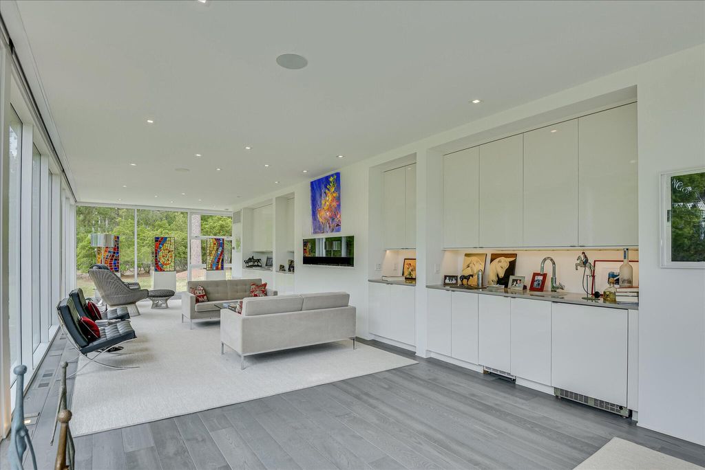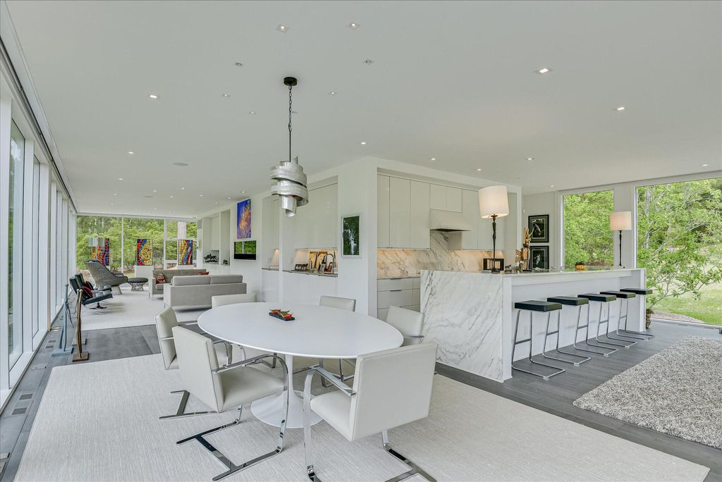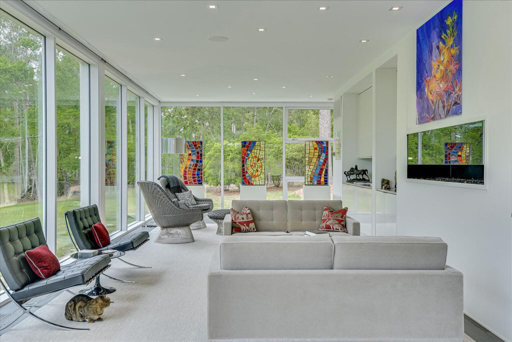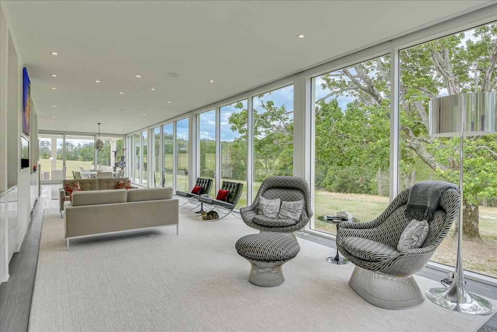 A unique opportunity to own this incredible 118 acre farm minutes to town with an amazing private setting. The main house was built in 2015, designed by renowned architect firm Roland & Broughton of Aspen Colorado. Built of glass and steel, this contemporary home is a true masterpiece, inspired by the Farnsworth house in Plano Illinois and designed by Ludwig Mies van der Rohe. The 2125 square foot one bedroom retreat has everything you could want. Luxury kitchen with top of the line appliances include, Induction cooktop, 2 refrigerators, Calcutta gold marble counter tops, white lacquer cabinets and much more. The open concept home has all the bells and whistles with intricate lighting details and beautiful hardwood floors throughout. There are hidden motorized shades which seamlessly lower for shade when wanted. A linear fireplace adorns the living room for cool winter nights. The large laundry room and pantry provide a large amount of storage. The master suite is the ultimate place to wake and start your day. Marble counter tops and shower have a spa like feeling in the master bath. The doors in the living area slide open to create indoor/outdoor living. The porch and patio are the ideal place to entertain, equipped with a gas fireplace, fan and heater to keep you comfortable year-round as you overlook your private paradise. The property has two beautiful ponds and a guest house inspired by famous Architect Phillip Johnson's brick house, equipped with custom kitchen with 2 ranges for catering parties. The studio space has round windows overlooking the spectacular views. A small garage is also attached, Mini Coopers welcome. The meticulously designed stables feature 8 stalls and 3 heated wash stalls. The barn includes a beautiful paneled tack room with kitchen and bath and an apartment for groom or guest. Your horses will enjoy ample options for turnout including 11 paddocks, with multiple run-in sheds. There is also a newly installed round pen, all with wonderful footing. The most spectacular addition, is the newly installed large arena with GGT footing with an underneath watering system installed by Wordley Martin of Wellington Florida. Of the 118 acres, 90.74 acres are in conservancy, 27 acres available for development. This truly unique property is one you must see.
