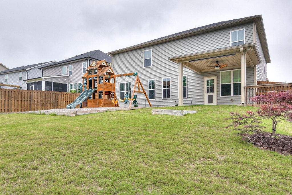 Welcome to 524 Hampton Dr - where comfort meets charm in the heart of a vibrant neighborhood! This spacious and thoughtfully designed 5-bedroom, 3-bathroom home offers the perfect blend of elegance and everyday livability. With a guest suite on the main floor, it's ideal for visitors, in-laws, or even a private office! Step inside to an open floor plan that flows beautifully, anchored by a cozy fireplace in the living room "” perfect for relaxing evenings and casual gatherings. The kitchen is a chef's dream, featuring granite countertops, a corner pantry, and plenty of counter space, all opening to a bright and cheerful breakfast nook where mornings feel extra welcoming! For more formal occasions, the dining room with classic wainscotting sets the stage for memorable dinners and celebrations! Storage is no issue here, with plenty of closets throughout, including walk-in closets in two of the guest bedrooms, keeping everyone organized with ease. Step outside to your covered patio with an extended uncovered area "” the ideal spot for summer grilling or a quiet cup of coffee. The backyard is a true retreat, complete with a built-in playset that stays with the home, and it backs up to peaceful green space for added privacy and beauty. Best of all, you're just a short stroll to the community pool and playground "” perfect for beating the heat and making new friends without the upkeep. Don't miss the chance to make this warm and welcoming house your forever home "” 524 Hampton Dr is waiting to welcome you!