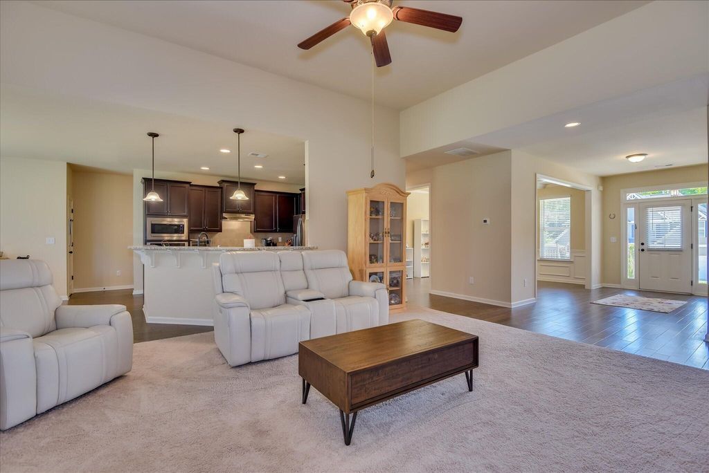 The Kensington Plan ranch-style home, meticulously maintained and move-in ready, offers 2955 square feet of living space, including 4 spacious bedrooms and 3.5 bathrooms. A charming rocking chair front porch welcomes you upon arrival. When you step into the home, you'll notice the formal dining room featuring detailed trim work, a coffered ceiling, and easy access to the kitchen. The kitchen is equipped with granite countertops, a tile backsplash, two pantries, stainless steel appliances (including a gas cooktop, refrigerator, dishwasher, wall oven, microwave, and disposal), a granite snack bar, and an informal dining breakfast nook. This area opens to the great room, which boasts a custom stonework fireplace and a vaulted ceiling. The breakfast nook leads to a screened porch with a ceiling fan, offering serene views of the green space beyond"”ideal for unwinding while enjoying stunning sunsets. The primary suite on the main floor includes a tray ceiling, ample wall space, a large walk-in closet, and a primary bath with a double vanity, walk-in shower, and garden tub. The split floorplan provides privacy for two main-floor guest rooms, as well as a bedroom/flex room with a full bath upstairs. Additional highlights include a spacious laundry room, window blinds throughout, substantial storage, and an attached two-car garage with remotes and keypad. The neighborhood offers exceptional amenities such as a beautiful clubhouse with a full kitchen (available for rent for parties and special events), a community pool, gym, scenic walking trails around a catch-and-release pond, and an equine riding easement. These features make this neighborhood ideal for recreation, entertainment, relaxation, and connecting with neighbors. The highly desirable and conveniently located Southside neighborhood of The Ridge at Chukker Creek offers a 20-minute commute to the SRS Main entrance and 5 minutes to Lowes Foods, Target, Publix, and other favorite stores and restaurants! Other easy commutes include the Meta AI Datacenter (17 miles), Fort Gordon (38 miles) and unbeatable access to world-class golf destinations including Old Barnwell, Palmetto Golf Club, Sage Valley, Woodside Reserve, and several other premier local courses. Contact the listing agent to request showings, and please provide four hours' notice as the home is occupied. This exceptional home is waiting for you - come see it today!