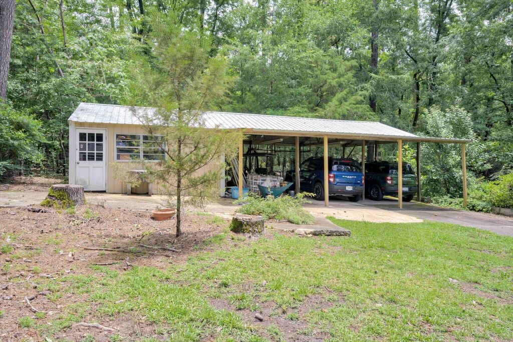 Private oasis .5 miles away from Edgefield Village Square. Once past the driveway easement, this property really opens up to private possibilities. The spring fed, bass and brim stocked pond greets you on the left as you approach the house. Plenty of attention to detail has been paid to this 2800 sq ft 5 bed 3 bath finished brick single family home. Landscaping includes a few fig trees and several blueberry bushes. Privacy is provided by the woods surrounding the lot. The back deck includes ramps for wheel chair access. A powered workshop compliments the back area complete with two car ports and a third space that can accommodate a golf cart. Recessed lighting throughout the house really show off the oak wood floors. One of the five bedrooms is set up as a mother in law suite complete with full bathroom that includes seating in the shower and handrails for accessibility. Fully custom kitchen with Kitchen Maid pullout cabinets and Kitchen Aid appliances including two recessed ovens. There is a fully functional wood burning fireplace the maintenance of which has been kept up. No need to be concerned with crawl space and foundation moisture with the moisture monitoring system and commercial dehumidifier and full moisture barrier under the house. The Trane HVAC is about 10 years old and in good repair having been serviced twice a year since installation. Hunter Douglas wooden blinds for window treatments and Benjamin Moore paint are a nice touch. New gutters installed. Put this Edgefield gem on your list.