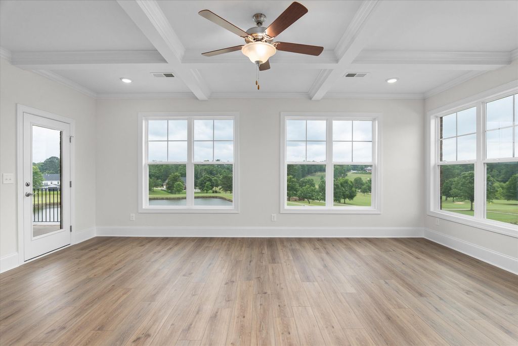 Welcome to the Berkeley floor plan by Hurricane Builders, perfectly positioned on a premium golf course lot in Mount Vintage Plantation, featuring breathtaking views of hole 2 tee box, pond and green. This all stone and brick home is a true showstopper, loaded with upscale finishes and thoughtful design. Step into a grand family room with soaring vaulted ceilings, elegant iron stair spindles, and a cozy fireplace with the perfect blend of style and comfort. The Chef's kitchen is a dream, boasting a 5-burner gas cooktop, upgraded stainless appliances, quartz countertops, tiled backsplash, a walk-in pantry, and an oversized island ideal for entertaining. The kitchen opens seamlessly into a spacious keeping room with beautiful coffered ceilings, leading to a covered back porch, an ideal spot to enjoy outdoor living with tranquil golf and pond views. The main-level owner's suite is a true retreat, featuring a large sitting area and a spa-like ensuite with double vanities, a freestanding soaking tub, a tiled shower with bench, a private water closet, and a generous walk-in closet. You'll also love the coffered ceilings in the formal dining room and heavy crown molding throughout. Upstairs, you'll find three additional spacious bedrooms with ample closet space. Additional highlights include a tankless water heater, a two-car side-entry garage, and plenty of storage throughout. Located in the prestigious Mount Vintage Plantation, residents enjoy top tier amenities including a Fitness Center, Junior Olympic-sized Pool, Tennis Courts, Bocce Ball Courts, a community Lending Library and 27 hole championship golf course! Don't miss the opportunity to make this extraordinary home yours, schedule your private showing today!