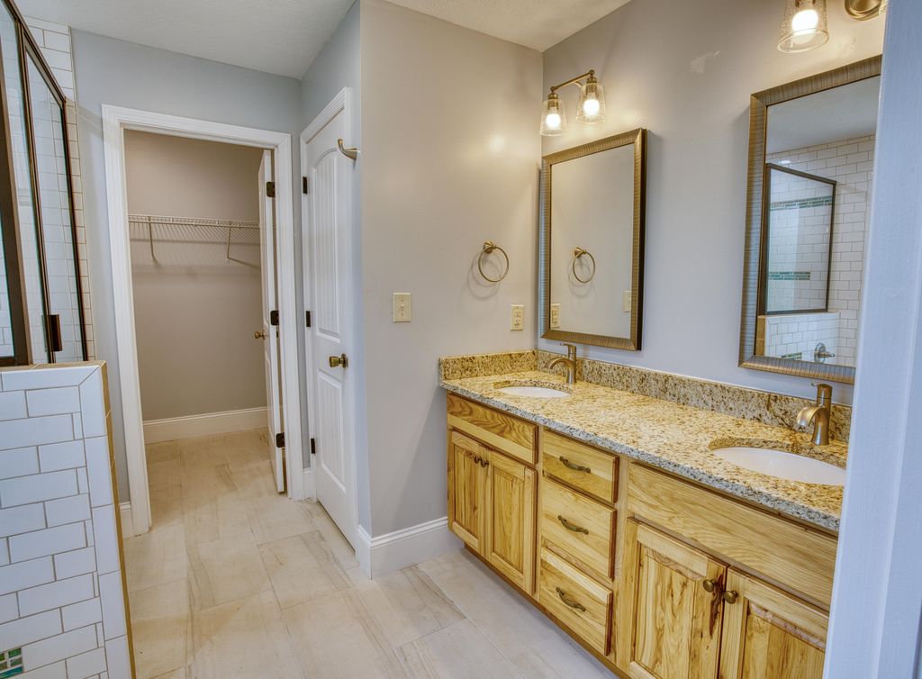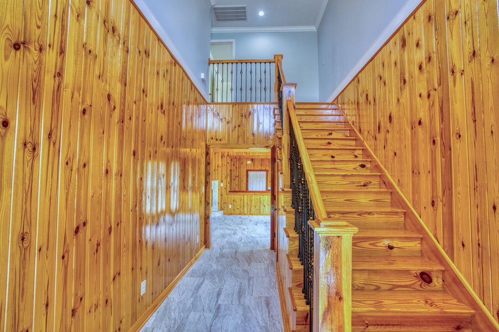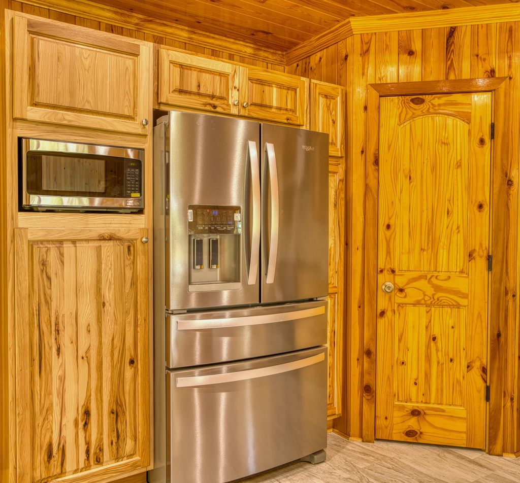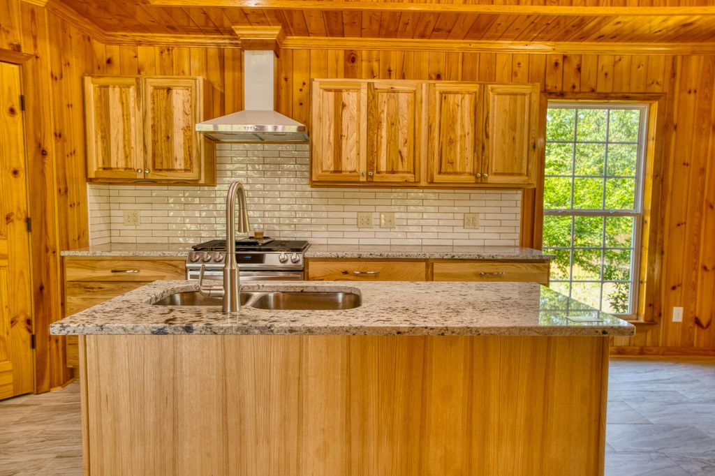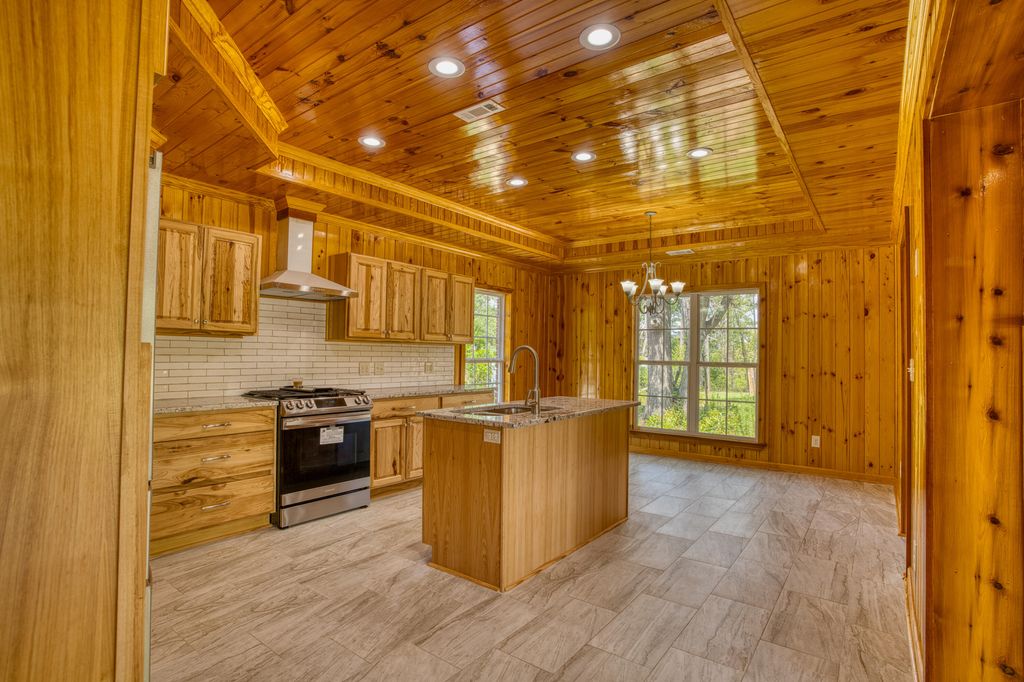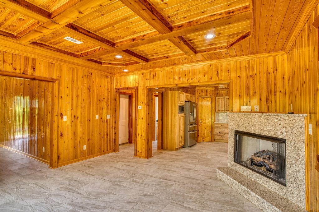 No detail overlooked in this exquisitely crafted, all-brick home nestled on nearly half an acre lot. Featuring 4 bedrooms and 2.5 baths, this residence blends rustic charm with modern elegance. Warm pine and poplar woodwork grace the walls, ceilings, and trim, creating a rich, inviting atmosphere throughout the open-concept living areas with ceramic tile flooring. The kitchen is a chef's delight"”offering granite countertops, ample cabinetry, a center island, pantry, stainless steel appliances (including refrigerator), and a sunny breakfast area. Overlooking both the kitchen and keeping room, the spacious living room is highlighted by a coffered ceiling, granite-accented corner fireplace, and oversized windows that flood the space with natural light. Upstairs, beautifully finished hardwood floors run throughout all bedrooms. The expansive primary suite showcases an elegant trey ceiling, while the ensuite bath features a granite-topped, double vanity, striking garden tub with floor-to-ceiling tile surround and separate tiled shower. Additional highlights include extensive parking space surrounding the home, and full guttering encircling the entire exterior for added functionality and curb appeal. Double garage, GE Washer and Dryer remain.