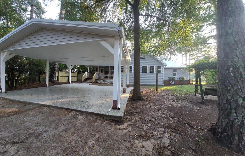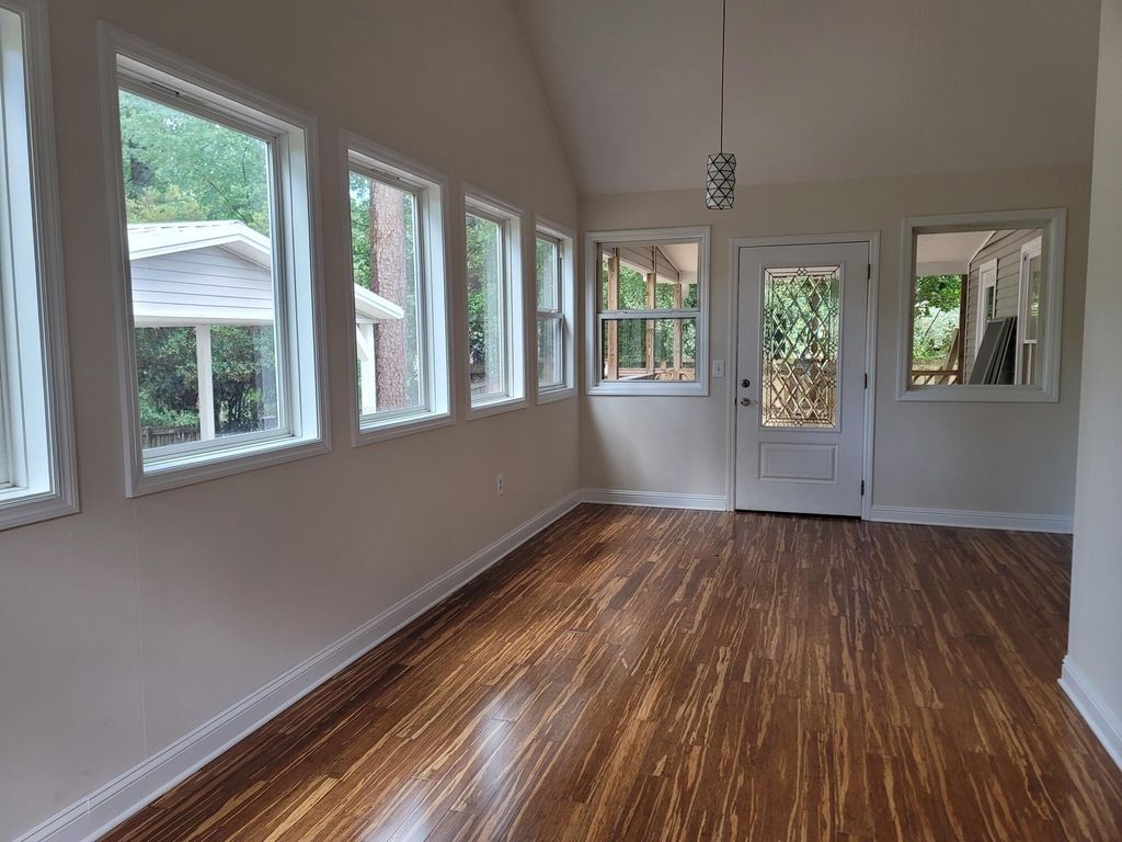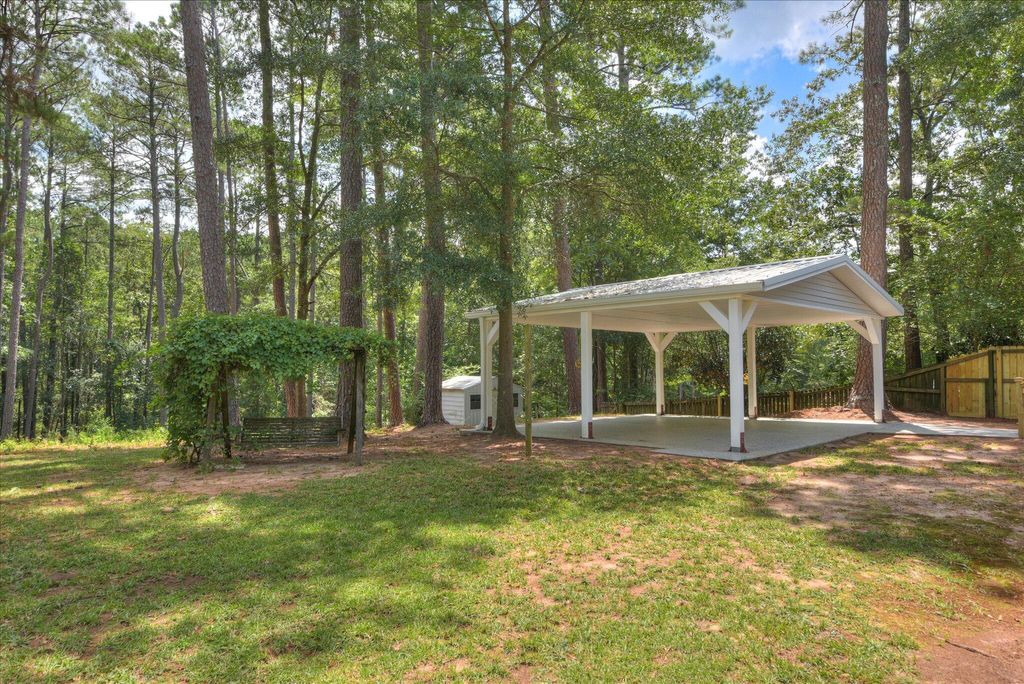 Price dropped!!! This is a great home in a nice neighborhood on the Southside of Aiken. The yard is .76 acres. The hardwood in the foyer and dining room floor where recently refinished. the flooring has engineered hardwood flooring in 2 bedrooms and hallway and family room. New carpet in Owner Suite and in the large room over the garage. The owner can offer a flooring allowance for the new owner. Updated lighting throughout house. New garage doors. Yard is landscaped with unique flowering plants and trees, fig and pear tree, Japanese Maple and Chinese Privet trees and many perennial flowering plants. Central heating and air through the downstairs. Plus, 2 New Mitsubishi Mini Splits installed in room over garage and the sunroom with remotes. Large covered outdoor deck plus covered patio great for entertaining. Additional storage in small storage shed in backyard. The kitchen has lots of oak cabinets and open counterspace to prepare your favorite meals. The dining room is perfect for entertaining or could be used as a home office. Large garage with new garage doors, recently installed. There is sink in the garage and the laundry room. Covered back deck, overlooking the backyard area. Large patio in the backyard. Great for friends and family gatherings. The fireplace is a wood burning fireplace with a wooden mantel. This home has lots of closets, 2 linen closets, 2 closets in foyer. Walk in closet in the Owner's suite and large closets in the bedrooms. Check out the size of this lot. The depth of the yard is 295.37 ft on the left side and 300.74 ft on the right side. Survey attached. County taxes only, No HOA fees. There is no HOA in the neighborhood, but there are restrictions recorded at the RMC. This home was recently painted inside and out. Home is in great condition and is move in ready. This home is great flowing space. with 2556 heated and cooled square feet. College Acres services the water and the trash. They also pick up lawn debri. All you have to do is put it on the street and they will pick it up. This is so helpful in maintaining your yard.
