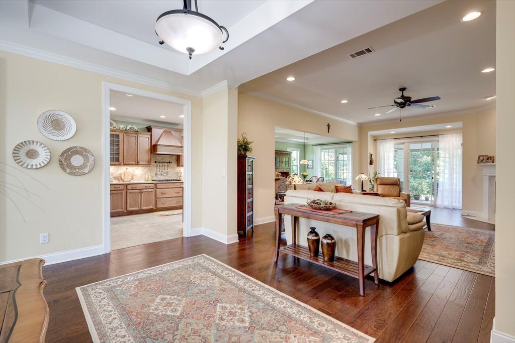 If you want a Mint Condition, like new home with a view, this is it. Gorgeous one level home on cul-de-sac with golf view. Look out onto the 3rd hole Hollow Creek Course. This beautiful 3 Bedroom, 2.5 Bath has everything you would want. Dream kitchen with plenty of custom cabinetry, bright breakfast area, formal dining and comfortable Great room. Master suite has oversized walk in closet, vaulted tray ceiling, split vanities and walk in shower. Enjoy the large great room or the additional cozy den. Home opens to a lovely screened in porch and open patio to enjoy the natural lush surroundings and very private backyard. Home has quality gutters and gutter guards. The walk-in crawl space with cement pad is a fantastic additional storage area. This is a must see.