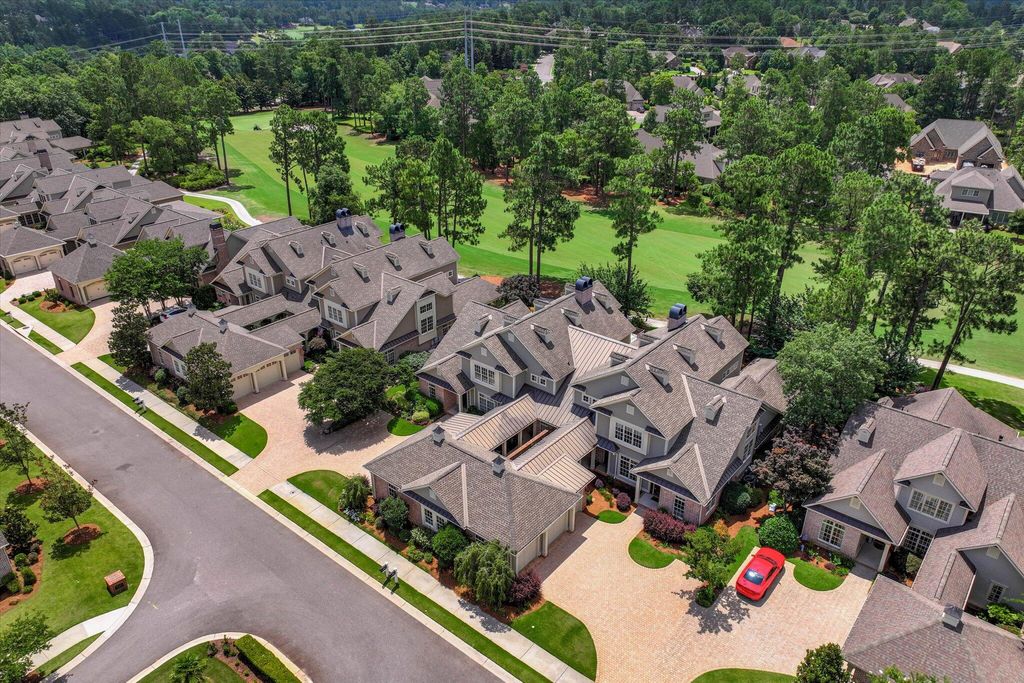 Stunning Townhome on the Award-Winning Nicklaus Design Course in The Reserve at Woodside Plantation. Nestled in the prestigious Highlands Neighborhood, this exquisite townhome offers a lifestyle of luxury, comfort, and unparalleled views on the #1 fairway of the renowned Nicklaus Design Course. With meticulously designed interiors and high-end finishes, this property is a true masterpiece waiting for you to call it home. Exquisite Interior Features: As you enter, you'll be greeted by a warm and inviting atmosphere, highlighted by rich Brazilian Cherry floors that flow throughout the main living spaces. Carefully selected lighting from Visual Comfort and Hubbardton Forge enhances the sophisticated design, while custom wallcoverings bring texture and style to the Dining Room, Foyer, and Powder Room. Plantation Shutters add a timeless touch to the windows in the Dining Room, stair landing, and one of the upstairs bedrooms. The kitchen and upstairs Entertainment Room/Living Room are graced with custom woven shades that perfectly complement the spaces. The foyer opens to a charming study, featuring Cherry paneling and beamed ceilings, creating an ideal setting for focused work or quiet reflection. The gourmet kitchen is a chef's dream, outfitted with premium Viking stainless steel appliances, including a gas cooktop, built-in refrigerator, wall oven, microwave, warming drawer, and wine cooler. Custom Cherry cabinetry with ''tip-on'' functionality pairs beautifully with the striking Cambria countertops. The cozy breakfast nook offers the perfect spot to savor your morning coffee while enjoying panoramic views of the golf course. The formal Dining Room, with its coffered ceiling and intricate trim work, sets the stage for elegant dining experiences. At the heart of the home, the Great Room is a stunning space, featuring a remote-controlled Gas Ribbon fireplace with a custom mantel. Expansive Pella sliding doors open to a covered porch, seamlessly blending indoor and outdoor living, creating an ideal environment for both relaxation and entertaining while enjoying the tranquil views. Luxurious Owner's Suite: Retreat to the main level owner's suite, your personal oasis featuring a spacious walk-in closet equipped with built-in organizers. The en-suite bath is a spa-like sanctuary, showcasing Travertine floors and countertops, a mirror TV, dual vanities, a luxurious walk-in tiled shower, and an elegant undermount cast iron tub beneath a stunning wood-paneled wall and barrel ceiling. Spacious Upper Level: Journey up the wide staircase to find three additional bedrooms and two baths. Including a versatile second primary suite that also opens onto a private balcony overlooking the golf course. The central game room/living area is perfect for entertaining, complete with a wet bar, mounted flat screen TV, and pool table. The Pella slider opens onto the balcony further extending the indoor-outdoor living experience. Modern Convenience and Community Benefits: This home is equipped with modern amenities, including tankless water heaters and upgraded electrical switches featuring Lutron low-profile dimmer switches, ensuring convenience and efficiency. The oversized garage boasts two car bays along with a dedicated golf cart bay for your convenience. Living in the Highlands Neighborhood means that you are just steps away from The Reserve Club, where you can indulge in fine dining, golf, swimming, engaging tennis or pickleball matches, along with a myriad of events. Enjoy peace of mind knowing that the landscaping and exterior maintenance of your home are managed by the Highlands Neighborhood Association. Don't Miss This Opportunity! This stunning townhome harmonizes luxurious living with the beauty of nature and community. Whether you're looking for a serene retirement retreat or a vibrant family home, this property offers the perfect blend of both.