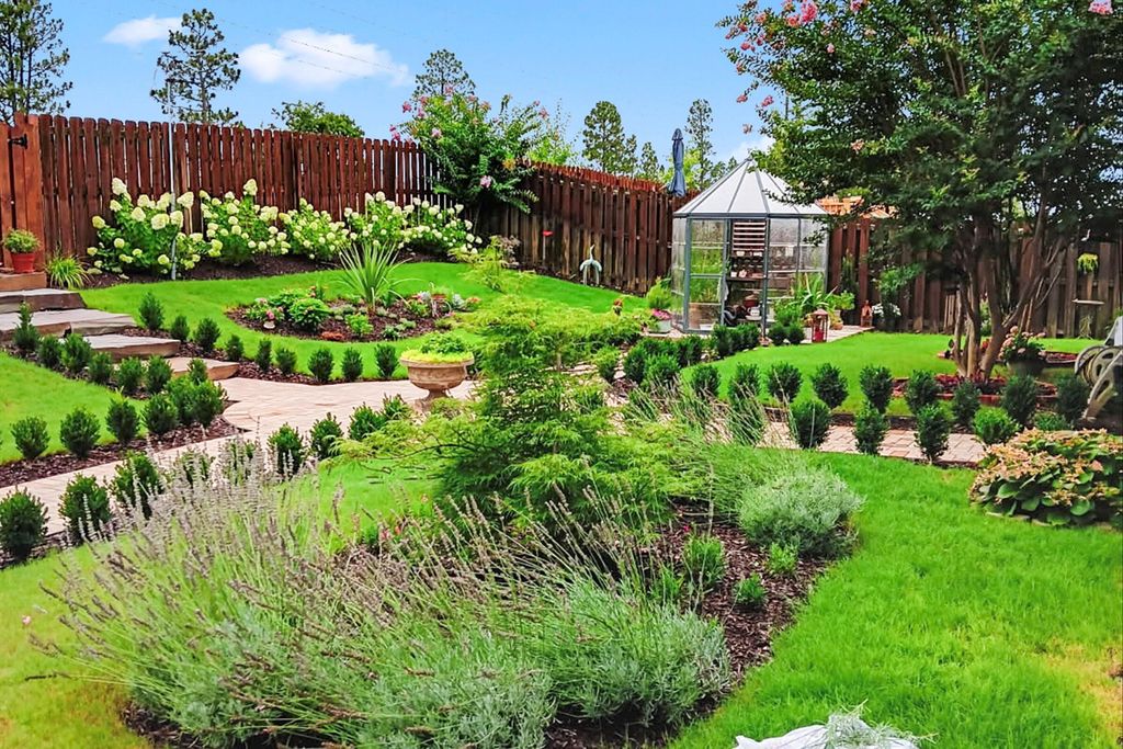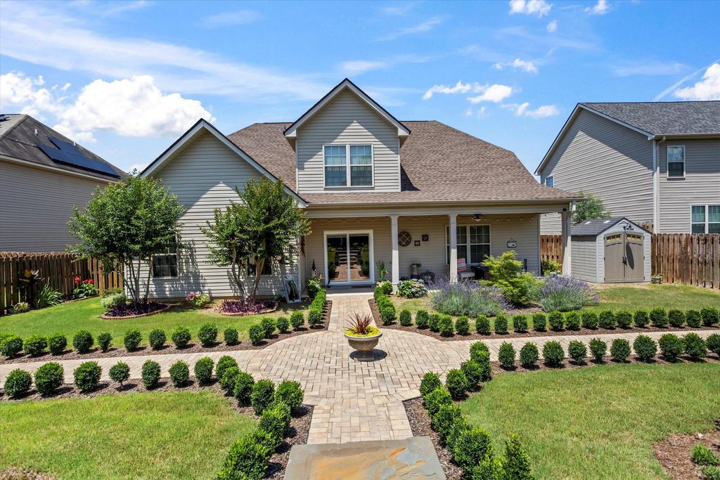 Back on the market, not fault of seller -- Gorgeous, updated 4 bedroom 2 1/2 bath home in Sage Creek. As you enter the home, you are welcomed by style and sophistication offering high ceilings, a beautiful chandelier, arched doorways, and an airy space. The meticulously maintained yard has beautiful plants and shrubbery. The backyard is a majestic, stunning garden with mostly perennials for low maintenance. It offers a sense of serenity when relaxing on the large covered back porch. Greenhouse and storage shed to convey. The refreshed kitchen offers stylish new flooring, updated cabinets, stainless appliances, granite countertops, and a pantry. Recently installed sliding doors in the kitchen bring in an abundance of natural light and allow for stunning views of the backyard. The living room which is connected to the eat-in kitchen has high ceilings, new carpet, an electric fireplace for added comfort or it can be used as a decorative feature. It has beautiful views of the backyard and upstairs landing balcony. The oversized primary suite is situated on the main level with a large walk in closet. The primary bathroom offers a soaking tub, walk in shower, and double vanities. Upstairs you will find three sizable bedrooms with ample sized closets and a guest bathroom. One of the bedrooms is currently being used as a secondary living room. Newer paint throughout the home by professional painters and new flooring on the main level. New roof in 2024, downstairs HVAC 2022 which is of size to heat/cool the entire home, and upstairs HVAC 2013. The three car garage offers plenty of space for parking and storage. Conveniently located with minutes to I-20, Bridgestone, and the upcoming Meta Data Center and a short drive to shopping and dining.