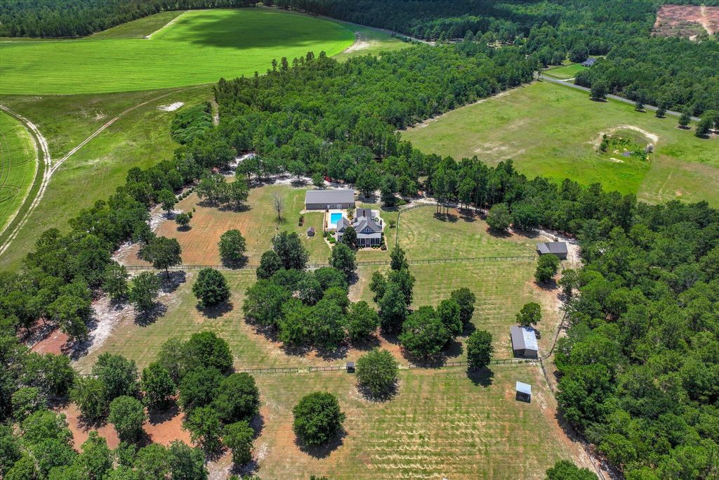 Welcome to your private Farm/Equine retreat only a 15-minute drive to Aiken. The property is nestled among trees and features a gated private entrance with winding driveway"”designed for both lifestyle and income potential. This custom 4-bedroom, 3.5-bath home features warm wood flooring, detailed finishes, and two screened porches, including one with a wood-burning fireplace overlooking the 18x36 saltwater pool and a second porch off the living room overlooking the pastures with gorgeous mature hardwood trees. The primary suite is located downstairs with beautiful reclaimed wood floors, walk-in closets and an ensuite bath with tub & shower and dual sinks. The kitchen is open to the living area and features a large kitchen island, granite countertop, and stainless steel appliances. The two bedrooms upstairs share a spacious bathroom. The private attached cottage has a 4th bedroom with a kitchenette and a full bath and is accessible from the screened porch. It offers flexible use as a separate living space, an office or for guests. The large (~50'x80') Hoover-built shop (2017) features tall ceilings and is rough-plumbed for a bathroom and 90% insulated, making it ideal for equipment, hobbies, or could be converted into a barn. An additional detached garage with an upstairs one-bed, one-bath apartment with a kitchen, washer, and dryer, provides additional rental income or space for guests, trainers, clients or caretakers. Farm/Equine amenities include nearly 6 acres of wood-fenced pasture: an approximately one-acre pasture with a 2-stall barn, a second 2.5-acre pasture with a second 2-stall shedrow barn, and another 2.5-acre pasture with two run-in shelters. There's also a cleared 1-acre area behind the home"”ideal for adding a riding arena. This versatile property blends comfort, functionality, and opportunity"”perfect for hobby farmers, equestrians, investors, or anyone seeking a private space to live, ride, and relax. More acreage is available.