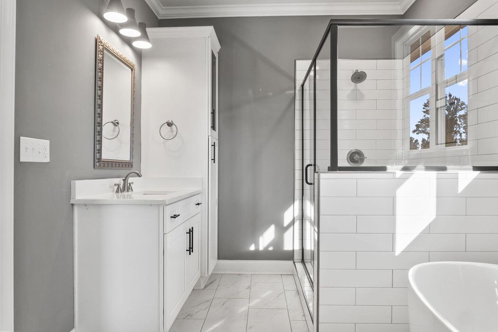 #SouthernCharlestonStyle Discover Southern charm fused with modern sophistication in this beautiful Charleston-style home located at 592 Rivernorth Drive in North Augusta, SC. With four bedrooms and three and a half bathrooms, this residence offers spacious comfort with elegant features throughout. From the moment you step inside, hardwood flooring will greet you warmly. The inviting living room showcases sliding glass doors that open to a private rear yard and features a cozy fireplace framed in brick. The gourmet kitchen is a chef's dream, complete with dual islands, a wall-mounted oven, a gas stove equipped with a pot filler, stainless steel appliances, granite countertops, subway tile backsplash, generous cabinet space, and a bar top that seats three. Adjacent to the kitchen, the breakfast area shines with charming judges paneling, perfect for casual dining. A convenient half bath rounds out the main level. Upstairs, wood tread stairs lead to carpeted bedrooms with vaulted ceilings, while a flex room offers its own full bath, recessed lighting galore, and an intimate sitting area measuring 8x11. Crown molding adds a touch of sophistication throughout the home, which also features energy-saving amenities like a tankless water heater. The master suite is an oasis with vaulted tray ceilings, an oversized walk-in closet, and a luxurious bathroom that includes ceramic tile, a custom tiled walk-in shower, and a relaxing soaker tub. Outdoor living is elevated with a large screened rear patio measuring 21x12, perfect for unwinding or entertaining. The side-load two-car garage includes a Tesla charger, and the peaceful backyard offers privacy with only one neighboring property. This remarkable home combines timeless design and thoughtful details for effortless living in a serene setting. The community itself is a paradise, with two scenic ponds and direct river access, perfect for outdoor enthusiasts. Rivernorth exclusively offers a private neighborhood boat ramp, a picturesque community dock with a gazebo, dedicated boat trailer parking, and miles of well-lit sidewalks for leisurely strolls. Its proximity to downtown North Augusta ensures you're never far from vibrant shops, restaurants, and entertainment. With guaranteed Masters rental status, this home presents a unique and lucrative investment opportunity. Endless boating and fishing adventures await along the serene Savannah River.