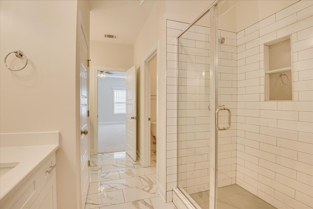 Now Move in READY! The Bondi Plan by Designer Homes of Georgia! This beautifully designed 3-bedroom, 2-bathroom single-story home is located in the sought-after Sanctuary subdivision in Aiken, SC. Set on a spacious lot that backs up to peaceful green space, this home combines charm, comfort, and thoughtful design. Step inside to an inviting open floor plan filled with natural light, custom trim work, and elegant details throughout. The living area features a cozy fireplace and flows seamlessly into a luxurious kitchen equipped with granite countertops, a stylish tile backsplash, and stainless steel appliances. Enjoy your private outdoor oasis with a fully landscaped backyard and a covered patio. Perfect for relaxing or entertaining. All bedrooms, including the spacious owner's suite, are conveniently located on the main level. The owner's suite features a stunning en-suite with dual vanities and a tiled walk-in shower. The Sanctuary neighborhood offers a lifestyle of ease and community, with sidewalks, streetlights, a large community garden, and a scenic walking trail. Located just minutes from Downtown Aiken, Bruce's Field, Hitchcock Woods, premier equestrian venues, shopping, and fine dining.. Buyer to verify square footage and school zones.