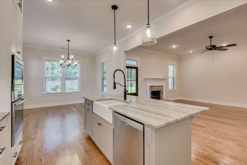 This modern farmhouse in Cooper Place was built in 2021 and looks brand new! Enter the front door to a bright two story foyer with open stairs leading to the second floor. To the left is a secondary bedroom or office with full bath. Through the wide front hall you'll find an open concept kitchen with breakfast room and great room with brick fireplace with gas logs. The kitchen has a large leathered granite center island suitable for seating four guests, plentiful cabinet spaces reaching to the ceiling, a gas cooktop and Bosch stainless steel appliances, and a tremendous walk-in pantry with custom shelving. Primary bedroom also on the main floor with a gorgeous bathroom featuring a glass shower and separate soaking tub, dual granite vanity, and custom walk-in closet. Bedroom also has access to a screened porch with stamped concrete floor. The laundry room has a whitewashed brick floor, matching LG front loading pedestal washer and dryer, granite counter for folding, ample cabinet storage, and a large mudroom bench with coat hooks. Upstairs in this farmhouse you'll find a bedroom with private bath, and another two bedrooms that share a hall bath. The flex room is very large (17x27) and could be used as a fifth bedroom or large recreation area or office space. The outdoor space on this home is serene and beautifully landscaped, and includes privacy fencing in the rear yard. Owners beautifully maintained this home and their upgrades include all oak hardwood floors inside, a large screened porch with stamped concrete flooring, and a premium epoxy finish on garage floor. Cooper Place neighborhood is convenient to Exit 5, close to I-20 and downtown.