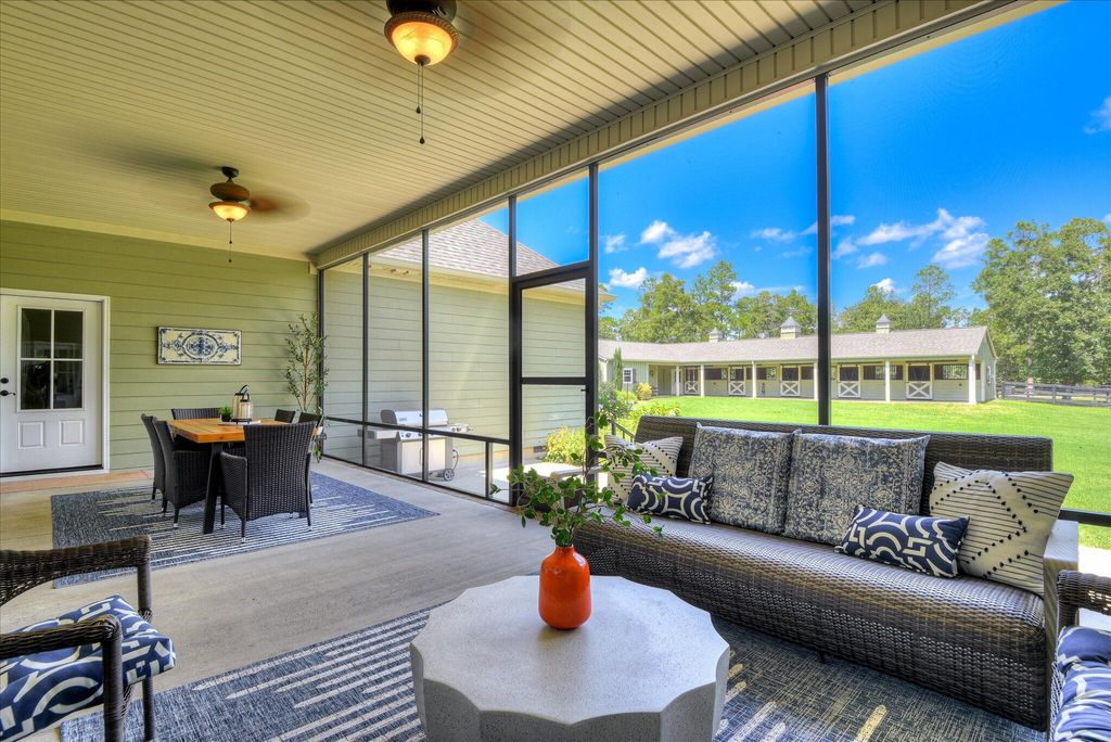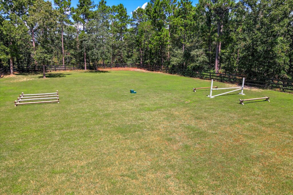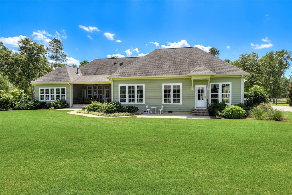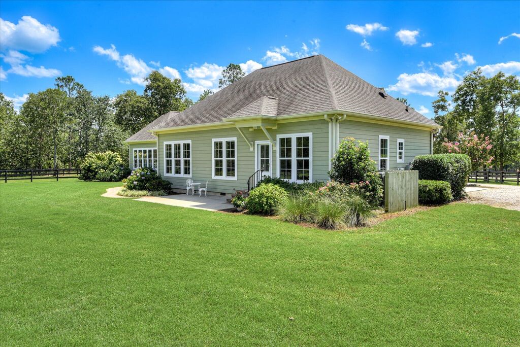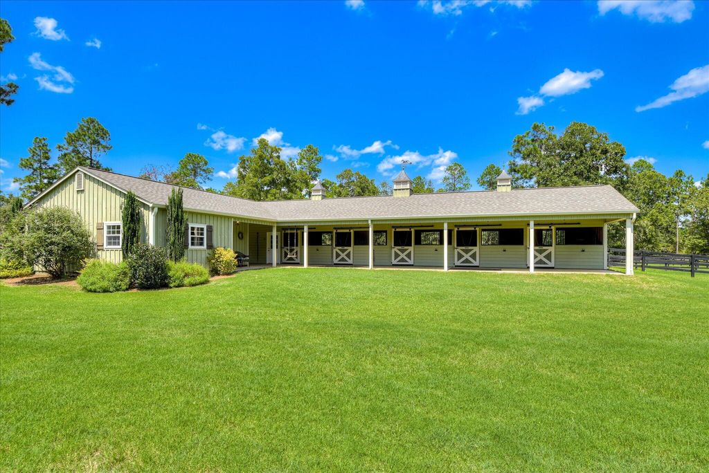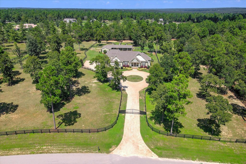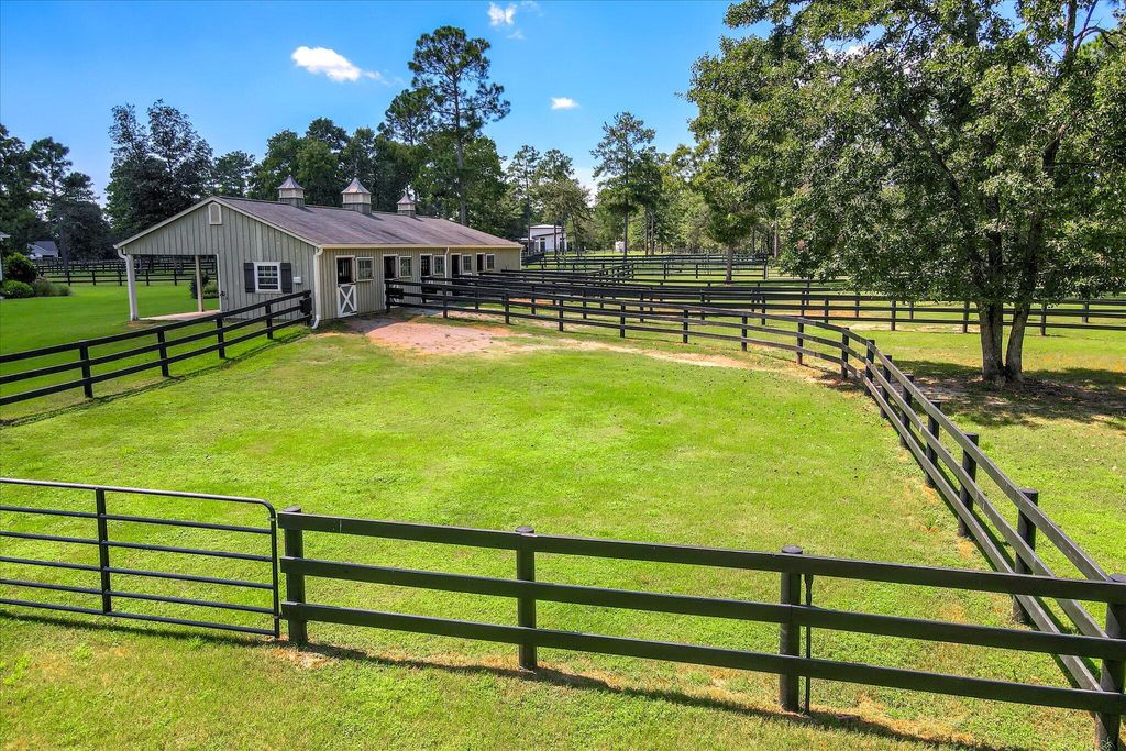 Nestled in Aiken's premier equestrian community, Three Runs Plantation, this private, gated estate with three-board no-climb perimeter fencing and a custom-built home with L-shaped barn offers the perfect balance of luxury living and equestrian convenience. This home offers rare flexibility "” live as one expansive residence or close off a section (simply close a door) for a complete guest wing or private living quarters with its own exterior entrance and private patio, ideal for mulit-generational living, in-laws or potential rental income. Inside, the home features hardwood and tile flooring throughout the main level, a chef's kitchen with Bosch appliances, dual-fuel range, refrigerator, dishwasher, touch faucet, garbage disposal, custom cabinetry, a large walk-in pantry, and a second smaller pantry. A full second kitchen with its own dual-fuel range, refrigerator, touch faucet, dishwasher, garbage disposal, and walk-in pantry provides unmatched flexibility. The thoughtfully designed floor plan includes two primary ensuite bedrooms on the main level one in each wing, two additional bedrooms (one currently used as an office), and a spacious bonus suite with private bath upstairs. The main primary suite offers a serene retreat with abundant natural light, dual vanities, jacuzzi tub, frameless shower, separate toilet closet, oversized walk-in closet, and an additional double closet. The second primary suite includes a large, bright bedroom with large windows, single vanity, walk-in closet, and private bath with separate toilet and shower closet. If used as two separate living units, Primary living unit would have 3 bedrooms and 2.5 baths. The secondary area would have 2 bedrooms and 2 baths. Additional home features include: Two living rooms, one with a gas fireplace. Two dining areas. Two laundry/mud rooms. Granite countertops, crown molding, 9'-10' ceilings, and a central vacuum system with built-in baseboard dusters (perfect for pet owners). Large, screened porch and 2 patios overlooking the barn and paddocks. Oversized 2-car garage. Irrigation, 50-gallon gas hot water heater. Natural gas heat, VF drive pump system well. All controls for pump are located inside the garage. It only requires small 2-gallon expansion tank instead of traditional 40+ gallon tank. This system maintains a desired, constant set pressure and operates with a 1.5 hp pump. Presently operating at 70 psi providing amazing showers. Floored attic storage. The equestrian facilities include a 5-stall barn with rubber mats, heated auto-waterers, wash area with hot & cold water, hay storage room, tack room with washer & dryer and half bath, and an oversized workshop. Horses enjoy direct stall-to-paddock access, 2 large pastures (one fully irrigated, one partially irrigated), and a fully irrigated grass arena that can also be used for turn- out. The property is beautifully appointed with three-board fencing and no-climb exterior fencing, with a automatic gate and has direct access to the community trails. Three Runs Plantation residents enjoy 2 clubhouses, a fitness center, swimming pool, 2 dressage arenas, 2 jump arenas, a cross-country course, and over 30 miles of private riding trails. Just minutes away lies historic downtown Aiken, known for its charming shops, dining, and welcoming small-town atmosphere. Aiken is celebrated as one of the nation's top equestrian destinations, offering year-round opportunities for horse lovers: world-class horse shows, eventing competitions, polo, fox hunting, western disciplines, and extensive trail riding. This estate is designed for any equestrian, and suitable for any discipline, from the serious horse lover to the casual pleasure rider seeking luxury, flexibility, and a vibrant equestrian lifestyle"”both at home and in the surrounding community.