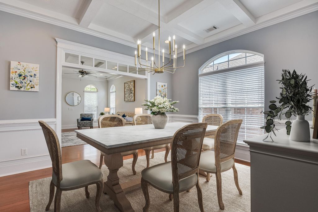 Step into this beautifully updated craftsman-style brick ranch! From the welcoming covered front porch to the rich craftsman trim, transom windows, and soaring ceilings, this home is full of character and warmth! Inside, you'll find a spacious open-concept layout! The family room boasts a stunning coffered ceiling, built-in shelving, electric fireplace, and arched windows that flood the space with natural light. The adjacent dining room features an elegant updated chandelier & wainscoting! The kitchen has several updates including a new stainless steel range, microwave, hardware, under cabinet lighting, Kohler double ceramic sink & faucet, as well as a convenient coffee bar with a granite countertop and lighting! The primary suite features a tray ceiling, a large walk-in closet, full bathroom with a double sink vanity, walk-in shower, tub & new toilet! The two additional bedrooms share a full updated bathroom with a new vanity, lighting, hardware, & toilet! Additional highlights include energy-efficient, all-electric systems, ADA-compliant doorways, New roof, hot water heater, & insulation, fresh paint, new lighting, new carpet in bedrooms, & a private, fenced backyard with a freshly stained deck"”perfect for outdoor living! Ideally located just minutes from shopping, dining, and I-20. Don't miss your chance to own this beautifully updated gem"”schedule your showing today!