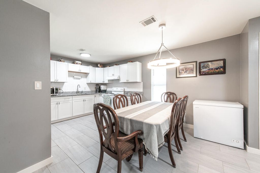 This completely remodeled one-story home offers 2,330 square feet of living space and features 4 bedrooms and 2.5 bathrooms! The roof is just one year new, and throughout the home you'll find all-new flooring, paint, countertops, vanities, and more, with no carpet to worry about! Welcoming rocking chair front porch with new front door! The layout includes a welcoming living room plus a versatile den or use as an office/workout room to suit your needs! The kitchen shines with granite countertops, new cabinets, a tiled backsplash, range and refrigerator, while the dining room is highlighted by a nice light fixture! The owners suite boasts a walk-in closet and a gorgeous bathroom with granite countertops and a custom walk-in fully tiled shower! There are 3 additional guest bedrooms and a guest bathroom with tiled flooring that extends up and a tile-surround shower, plus a convenient half bath with tiled flooring that extends up as well! Outside, enjoy an awesome covered patio/pavilion with a vaulted ceiling, perfect for entertaining, and a detached workshop/storage area with a covered, fenced section! The large fenced backyard provides plenty of space, and the extended driveway offers extra parking! This home blends modern finishes with functional living spaces, making it ideal for everyday living and entertaining. Schedule a showing today to make it yours! --