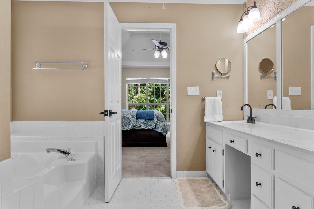 Welcome to this gorgeous brick ranch nestled in a refreshed country club golf community, perfectly positioned on a spacious 1.25-acre corner lot. Surrounded by beautiful, established landscaping and mature trees, the curb appeal alone sets the tone for what's inside. Step through the door and enjoy the ease of modern living with a traditional floor plan. You'll find the primary suite thoughtfully located on the main floor and the three additional bedrooms and a full bath on the upper level. The home has been updated throughout with stylish fixtures, modern LVP flooring, and countless touches that blend comfort and sophistication. Large windows invite natural light into the living spaces, creating an inviting flow for everyday living or entertaining guests. This home offers the rare balance of privacy and community with plenty of room to stretch out on your own land, while still enjoying the lifestyle and amenities of a golf course neighborhood with the home located on hole 12 of the course.. Centrally located between Aiken and Augusta.