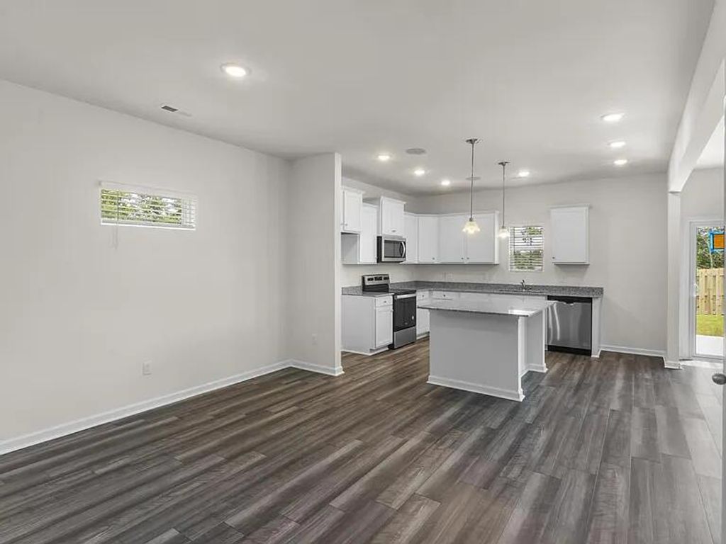 This Spacious 5-bedroom 3-bathroom home features an open-concept kitchen with a large center island, perfect for entertaining. The main level boasts beautiful plank flooring and 9-foot ceilings, creating an airy and inviting atmosphere. The kitchen flows seamlessly into a spacious living room and a separate dining room, ideal for family gatherings. A versatile loft area upstairs can serve as a second family room or play area. The main level also includes a convenient guest bedroom and a full bath and shower. Located within walking distance of the community pool, this home offers both comfort and convenience.