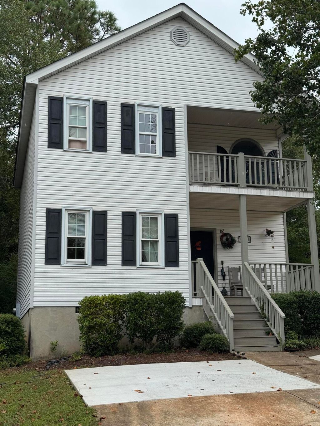 Find your new home conveniently located near all the South side of Aiken has to offer!! This Charleston Style home features a welcoming front porch that draws you into the foyer with built in mud room bench and coat rack! Large living room has wood floors. Separate dining area is the perfect place for friends and family to chat while you cook a delicious meal. Cozy kitchen with all appliances! Back deck overlooks partially fenced yard. Upstairs are three bedrooms, two baths. Primary is En Suite and has direct access to upstairs balcony outside. Balcony is the perfect place for morning coffee or sunsets. NO HOA.