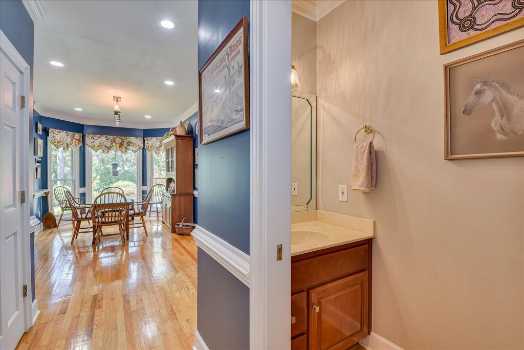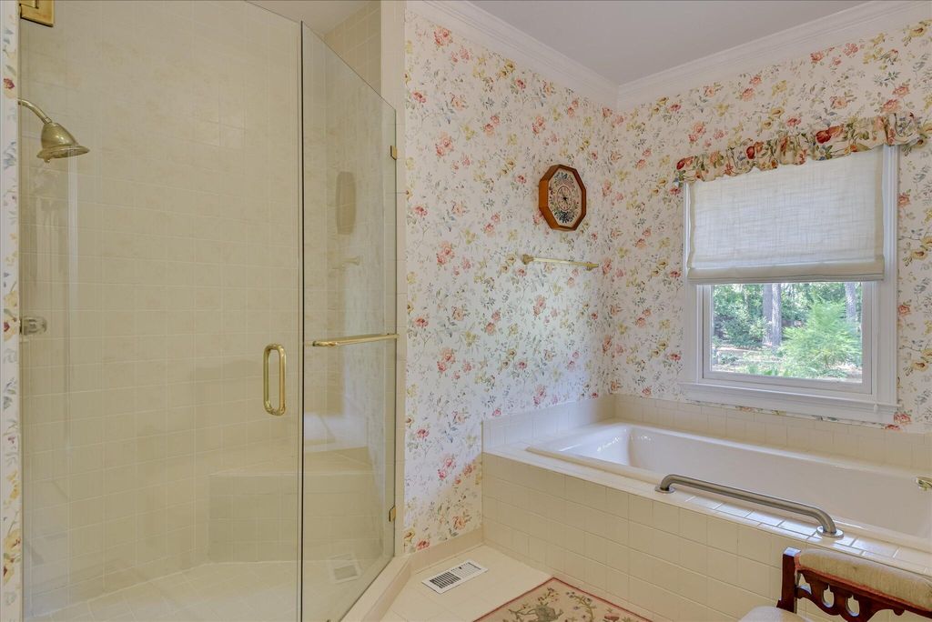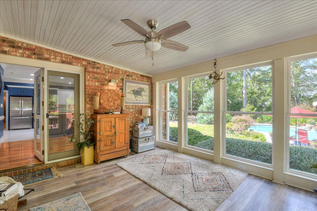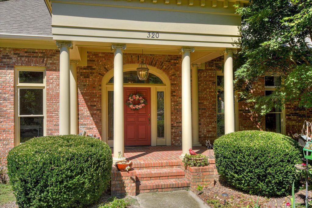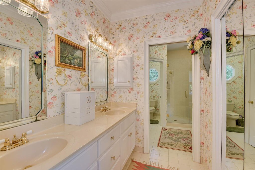Sprawling & spacious Georgian-style ranch in Woodside Plantation's coveted Estate enclave, this 3-bedroom home is nestled in a park-like setting, surrounded by beautifully landscaped grounds and a stunning resort-like pool. A lofty entryway with custom coffered ceilings in the dining room and built-in bookshelves in the library/office. Bright and spacious living room with gas-log fireplace. Updated kitchen, new roof & HVAC system. Large storage/bonus room on second floor above the attached 2-car garage. Sunroom with heating & air. Custom fenced-in dog run area. Charming in every way.