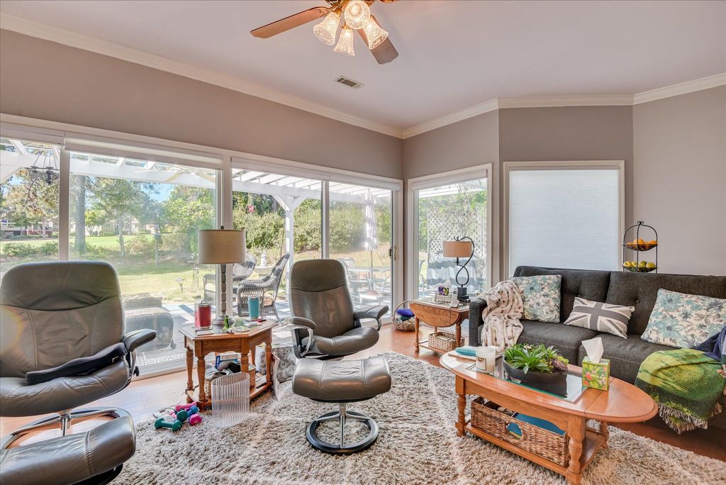 Charming One-Level Home on the 18th Fairway in Woodside Plantation. This one-level home offers serene golf course views from its position along the 18th fairway of The Cupp course. Inside, you'll find 2 spacious bedrooms and 2 full baths. The well-appointed kitchen features granite countertops, stainless steel appliances, and custom cabinetry, seamlessly connecting to a sunny breakfast nook and a formal dining room; ideal for both casual meals and entertaining. The inviting great room showcases a gas fireplace framed by built-in shelving, with direct access to a bright sunroom or sitting area, perfect for relaxing while enjoying the view. The generous primary suite includes a large walk-in closet and an expansive en-suite bath. A well-sized guest bedroom provides comfort and convenience with easy access to the guest bath. Step outside to a beautifully designed back patio"”an ideal space for outdoor entertaining or simply taking in the tranquil golf course setting. This home is located minutes to shopping, dining, and downtown Aiken.
