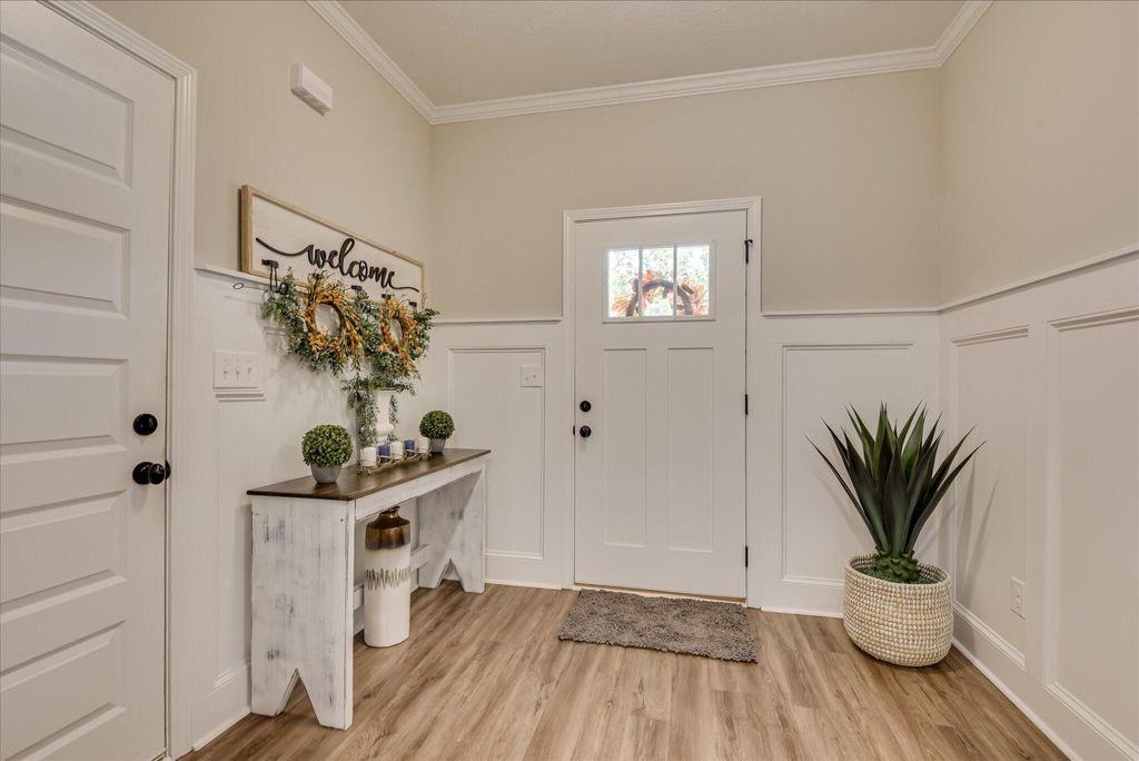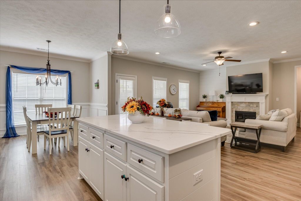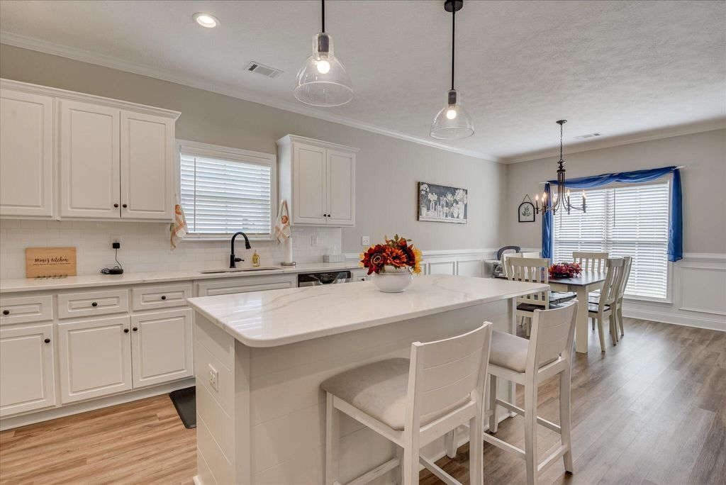 Charming Corner-Lot Home in Trolley Run - Stylish, Spacious & Move-In Ready Welcome to 3282 Greymoor Circle, a beautifully maintained 3-bedroom, 2-bathroom home located in the highly desirable Greymoor section of Trolley Run Station. This Barkley floor plan offers a bright, open layout with storage space galore. Situated on a premium corner lot, this home features elegant moldings throughout, adding a touch of timeless character to every room. The main living areas are finished with luxury vinyl plank flooring, offering durability with a modern look. The kitchen is the heart of the home, boasting granite countertops, a center island with var top, a walk-in pantry, and seamless flow into the dining area and spacious great room. The owner's suite is a true retreat, complete with dual vanities, a soaking tub, separate walk-in shower, and an oversized walk-in closet. Enjoy outdoor living with a covered back porch and privacy-fenced backyard. The larger 2-car garage provides plenty of space for vehicles and a large storage closet.
