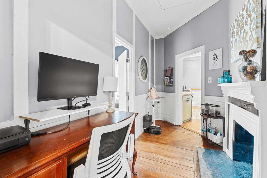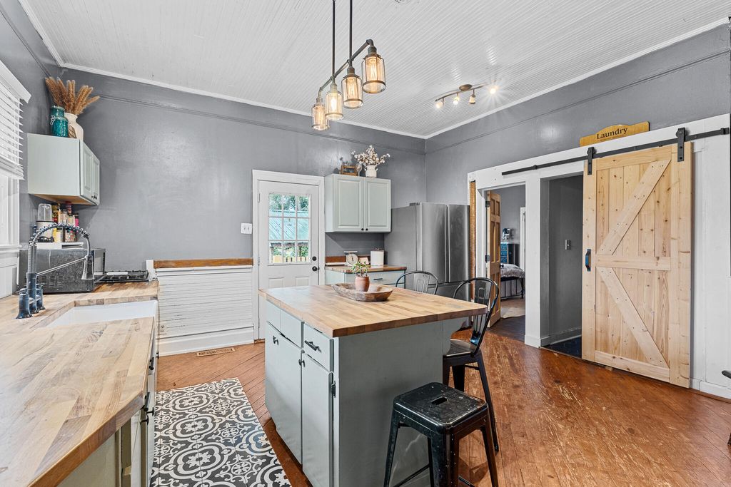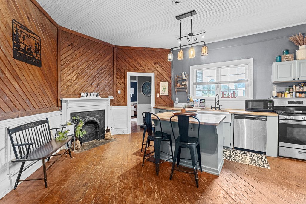 Wrap-around covered porch, high ceilings, beautiful large yard, historic charm in a historic small town only begins to describe this jewel of a home! No cookie cutter here, no HOA, no city tax with small town amenities! Yes to a front sidewalk that stretches to the charming town square for a short walk to restaurants & shopping. Walk up to a large porch for grandma's swing & rocking chairs to welcome you. The backyard opens with a metal gate for rear parking to a fenced yard, covered outdoor area, workshop/garage, and a new deck! Inside you will find original hardwood flooring, high ceilings, 3 bedrooms, 2 full bathrooms, laundry room. Large kitchen with center island. The owner's suite with a full walk-in closet & private bathroom. Located at 414 Penn St. Edgefield, SC where you find large spacious yards and small town charm. Located within 30-45 mins to big town living in several directions with small town living in a town that boast low crime rates, walking trails, parks, close to hospitals, schools, churches, farmers markets, and a little slower pace! Come home to Edgefield, SC.