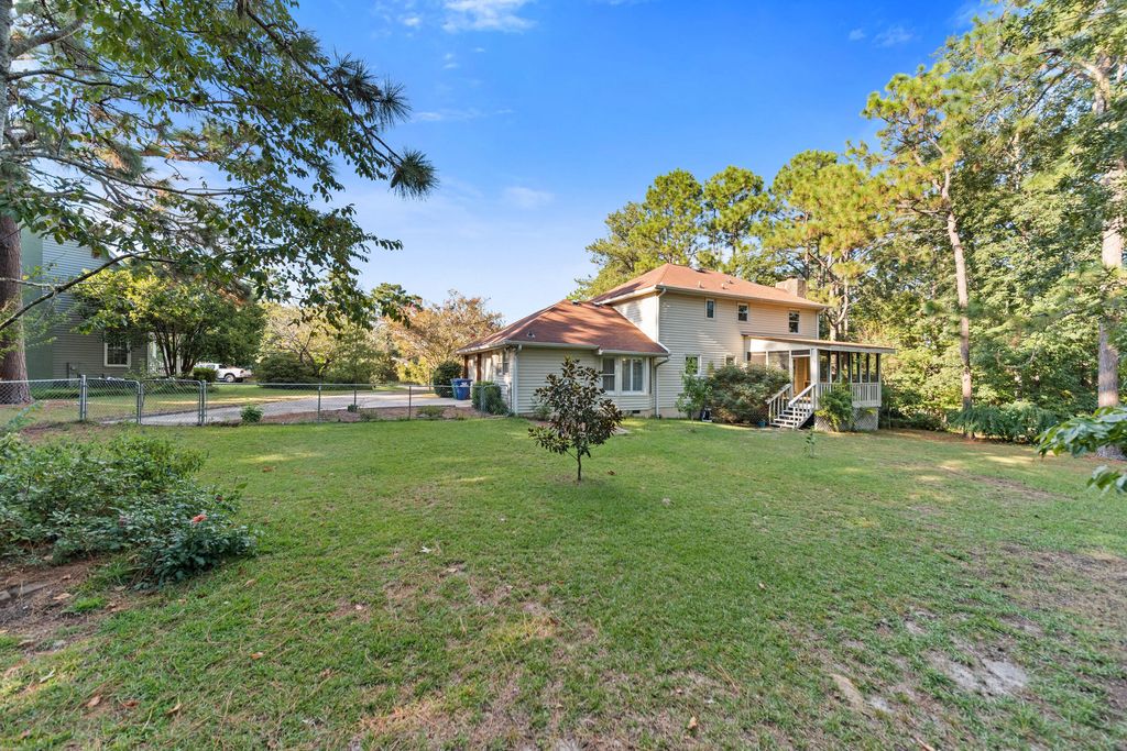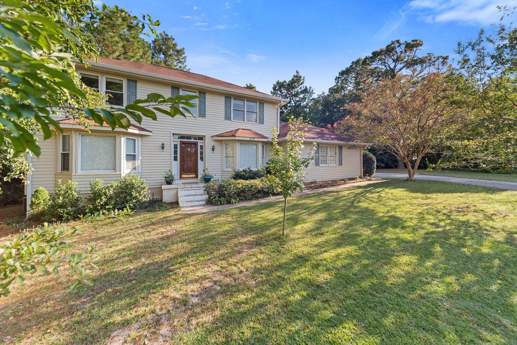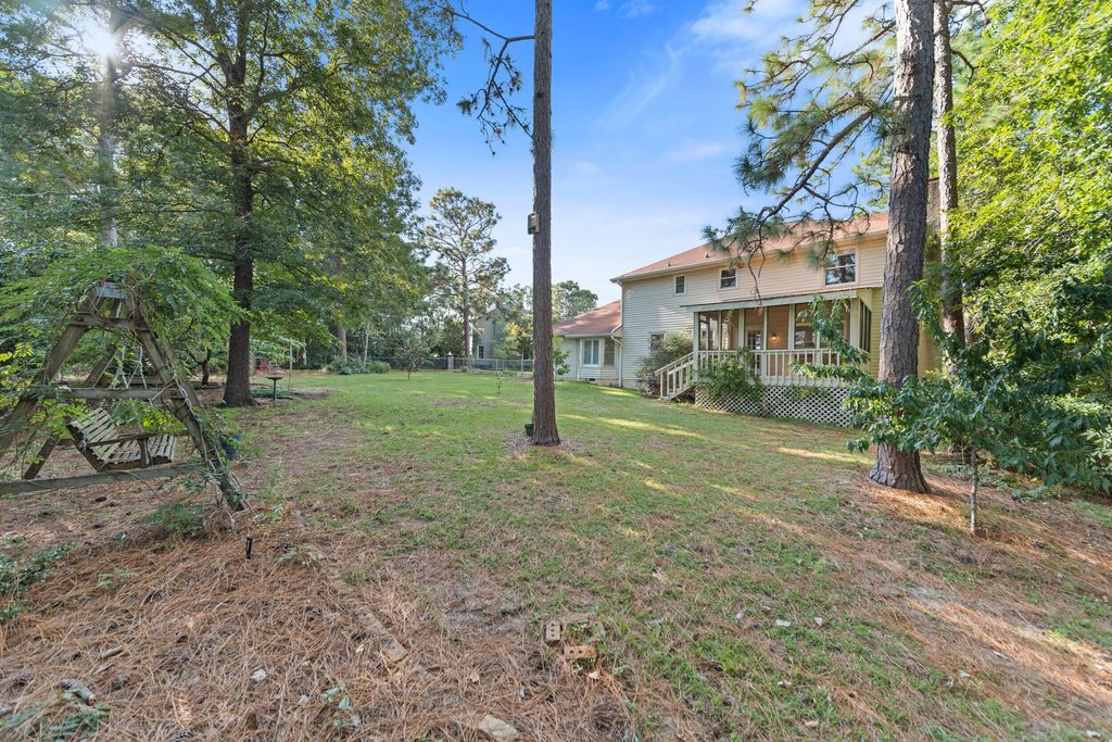 NEW LVP FLOORS ON MAIN FLOOR. This well loved and maintained home sits at the end of a quiet Cul-de-sac in the charming and peaceful neighborhood of Southwood. Sitting on just shy of a 1/2 acre, this 4 bed 2.5 bath 2 story home is waiting for the next owner to love and care for it. With a traditional floorplan you'll be able to entertain and enjoy everyday easy living. The cozy family room is centered by a stone fireplace and provides seamless access to a screened in backyard deck over looking the expansive garden area, perfect for enjoying morning coffee, evening breezes, or weekend cookouts in every season. Fruiting trees of peach and plum, and multiple mature blueberry bushes can be found in the backyard. All appliances will convey in the kitchen which features a charming bay window at the casual eat in area. You'll enjoy an oversized dedicated laundry room off the kitchen. Storage will never be a problem with the 2 car garage and backyard shed, also conveys. Upstairs you'll find your bedrooms provides flexibility for family, guests, or a home office. With a classic floor plan, quiet location, and inviting outdoor living, this home offers the best of both comfort and convenience. Schedule your tour today!
