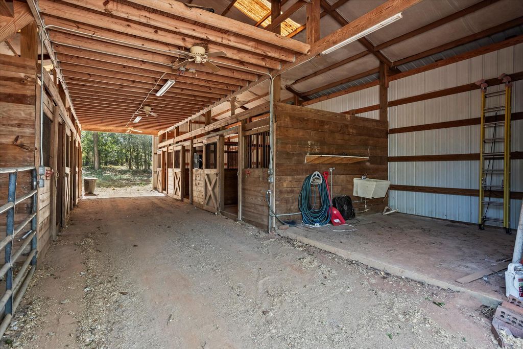 A completely renovated home and 6 stall barn situated on 5.7 acres in the sweet, lively, and lovely small town of Ridge Spring, SC, is ready for you and your animals. The 3 bedroom, 2 bath manufactured home sits on a brick, permanent foundation and has been renovated from roof to floor: new metal roof, all rooms repainted and new flooring, bathrooms renovated, cedar closets, renovated kitchen and a new back deck to enjoy beautiful views of this lovely farm. The metal barn has electricity and water, 6 stalls, tack area and washing area with a large hay loft. Three access areas are wide enough for your horse trailer, and metal gates await whatever fencing you choose to add. This property is a must see!