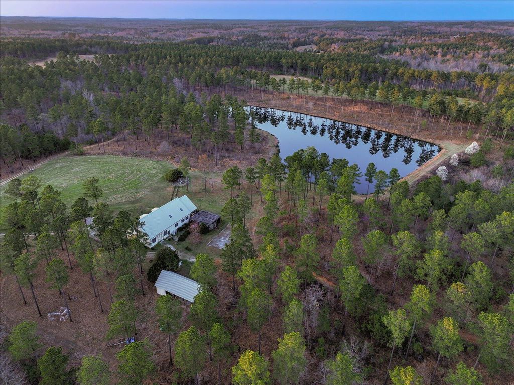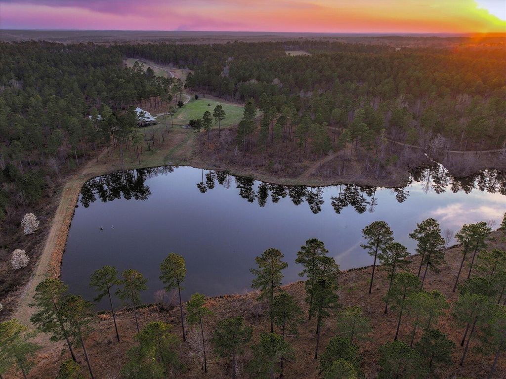 ''Woodlands Retreat'' A Sportsman's Paradise. For the discerning sportsman this ideally situated tract of immaculately managed farm land offers a diverse native habitat for game. Managed for deer, turkey, and quail with a total of 295 acres. Large swaths of quail woods open into lush fields of native grasses and food plots for wildlife. The two large ponds offer a total of 11 acres of exemplary fishing for Tiger Bass and Copper Nose Bluegills. The east side of the property is bounded by a scenic rocky creek. Bring your family and friends to this custom home of Hardie Plank Exterior in a Board and Batten style with a 50 year metal roof. Comfortable home that offers 4,754 sq. ft. with two story great room and open kitchen floor plan. Wood floors in main section are from old pine that was part of the original Pre Civil War post office in Selma, Alabama. When that building was dismantled, the wood was stored in a warehouse. Friends brought the warehouse and gave the wood to the current owners. Kitchen is a chefs dream. Large center island countertop is Red Dragon granite. Many cabinets, wet bar and ice maker round out the stainless appliances. Home comes fully furnished and with 4 bedrooms, 2 bunk beds and 3 baths can sleep up to 19 people. Large porch at side which overlooks pond and hillside field. Oversized drive through garage with roll up doors has storage galore. Inside the Garage is a Gun Room and Gun Safe. Garage has electric and water and also a hookup for a welder. Outside is large pole barn for all your tractors and 4 wheelers. It includes a fish cleaning station with granite countertop. Outdoor amenities include bluestone patios and walkways. One Patio is under a pergola and. has a table and chairs and cooking area with Big Green Egg. The second patio has fire pit and seating area. Outdoor lighted bocce court. A Montana Outfitter's Tent under a metal-roofed pavilion overlooks one of the ponds. Property is under a conservation easement with 3 building envelopes, each 2 acres with a view of a pond. Property can be subdivided. 6 Miles from home is the Bobby Brown State Park offering access to Clark Hill Lake. This is an extraordinary opportunity to fish for bass in the shoals of the Broad River with 5 types of native bass. Both Lake Russell and Clark's Hill Lake are within 6 miles. Clark's Hill Lake has easy access. Lake Russell does not allow docks or houses to be built close to the lake and access is limited. Elbert County-Patz field is a 15 minute drive and. has a runway length of 5,004 feet. Invite your friends, family and corporate guests to join you at this spectacular property. Elberton is 15 miles away, Washington Georgia is 25 miles, Lincolnton is 22 miles, Athens is 50 miles, Atlanta is 85 Miles. Greenville SC is 90 miles and Greenwood is 40 miles.