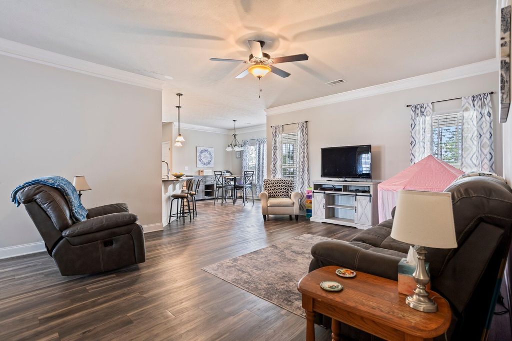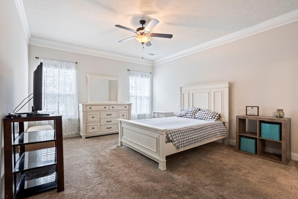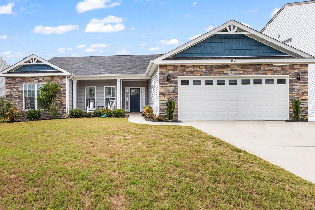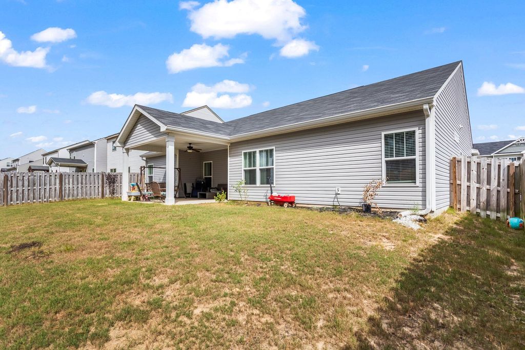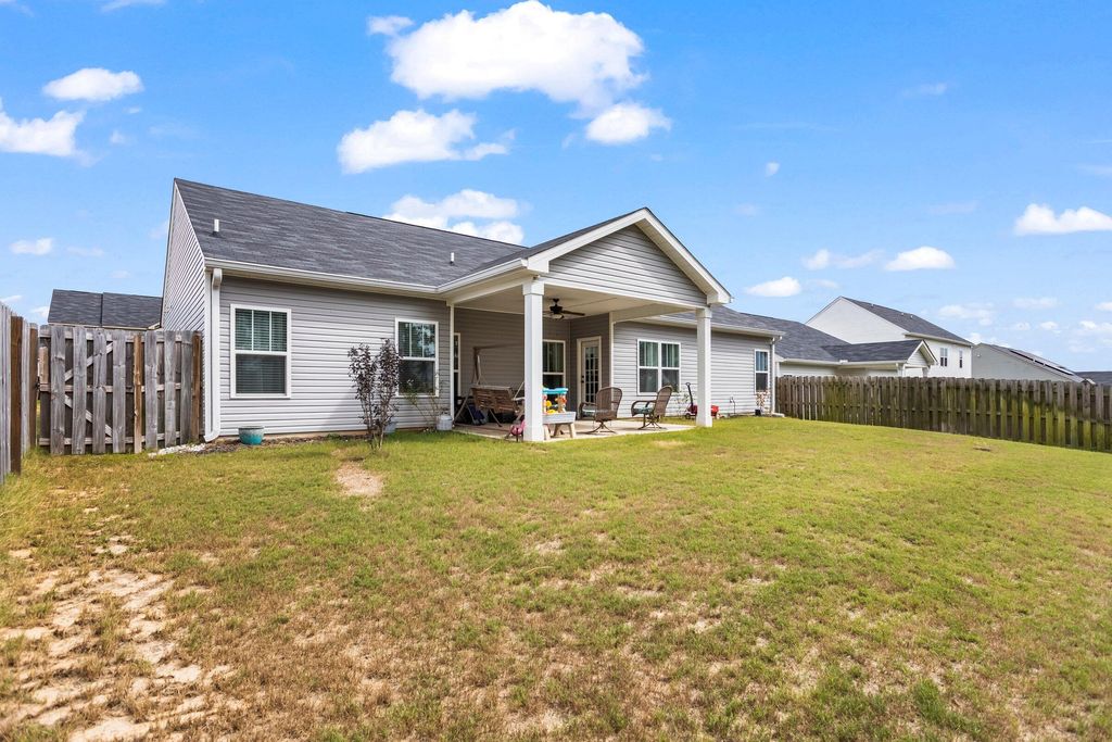 Welcome home to your Southern rocking chair front porch. This lovely ranch home is nestled in the desirable Sage Creek neighborhood and sits on a full acre lot. Well maintained, with only one owner, the home has been well cared for inside and out! The home features a split open floor plan with a beautiful formal dining room. The centrally located kitchen offers a sit in eating area, a dishwasher, and a pantry. The generously sized ensuite primary bedroom boasts a dual vanity, garden tub, and an impressive walk-in-closet. There are ceiling fans, crown molding, and modern upgrades. Natural lighting in this home is magnificent. Lots of windows. There is a covered back porch and additional patio space(w/ceiling fans) for entertaining. The lots is an acre and the majority of that space is available to a potential buyer to make their own personal backyard oasis. Backyard is fully privacy fenced. Trees near property line for privacy. Two car garage. The shed stays with the property. Close to SRS, ARMC, I20, Aiken, and Augusta. Move-in-ready - must see!