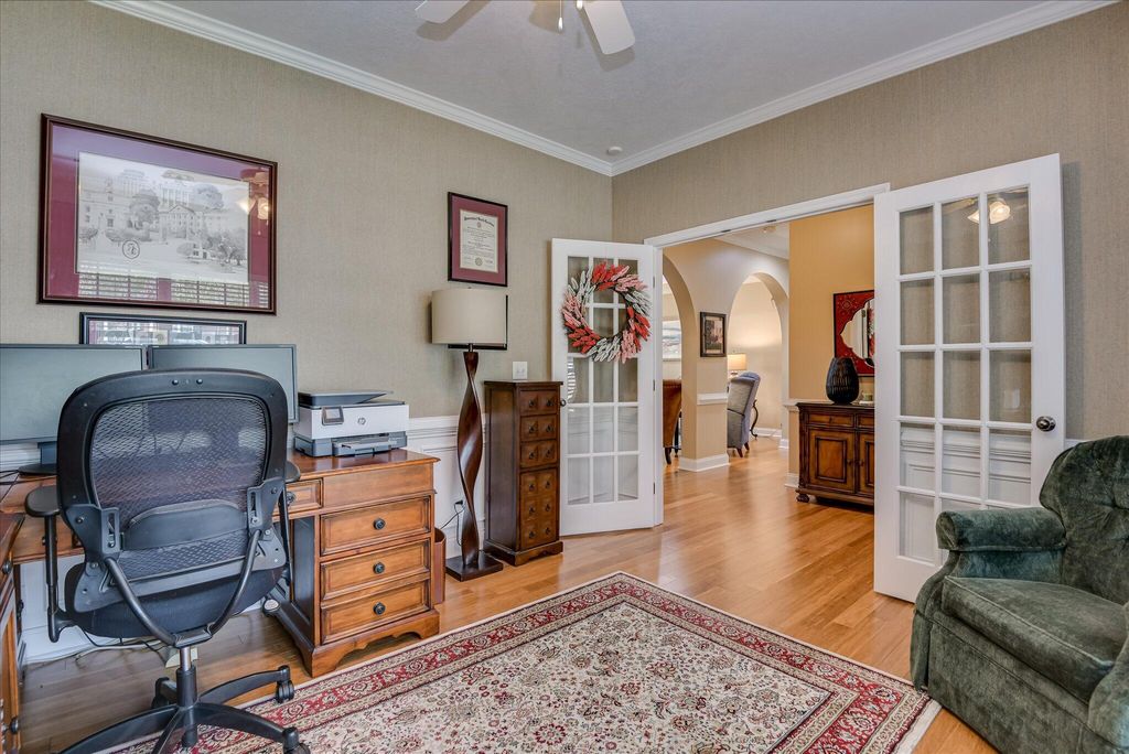 Welcome home to your garden oasis at 1927 Green Forest Drive! This 4 BR / 2.5 BA home boasts 2913 SF of upgrades. Architectural elements abound in the form of arched doorways into great room and kitchen, tray ceilings in great room and primary bedroom, and updated kitchen cabinets and center island. Large room off front entry can be used as office or formal living. Kitchen details include all granite counters, gas cooktop with hood, custom cabinets, touch free faucet at farmhouse sink, and built in microwave and wall oven with stainless upgraded refrigerator. Enjoy breakfast at the ample dining area that overlooks a beautiful patio with water feature and landscaped rear yard. Primary suite has been upgraded and includes double walk in closets, bathroom has clawfoot tub and separate glassed shower. Enjoy outdoor time on the large private screened porch with swing and ceiling fan. The rear yard is not to be missed with its level lot and garden waterfall feature and raised planters for vegetables. A single car garage sized outbuilding is perfect for storage, golf cart parking, or workshop. Location can't be beat, as this home is directly across the street from the Greeneway Trail and close to schools and shopping!