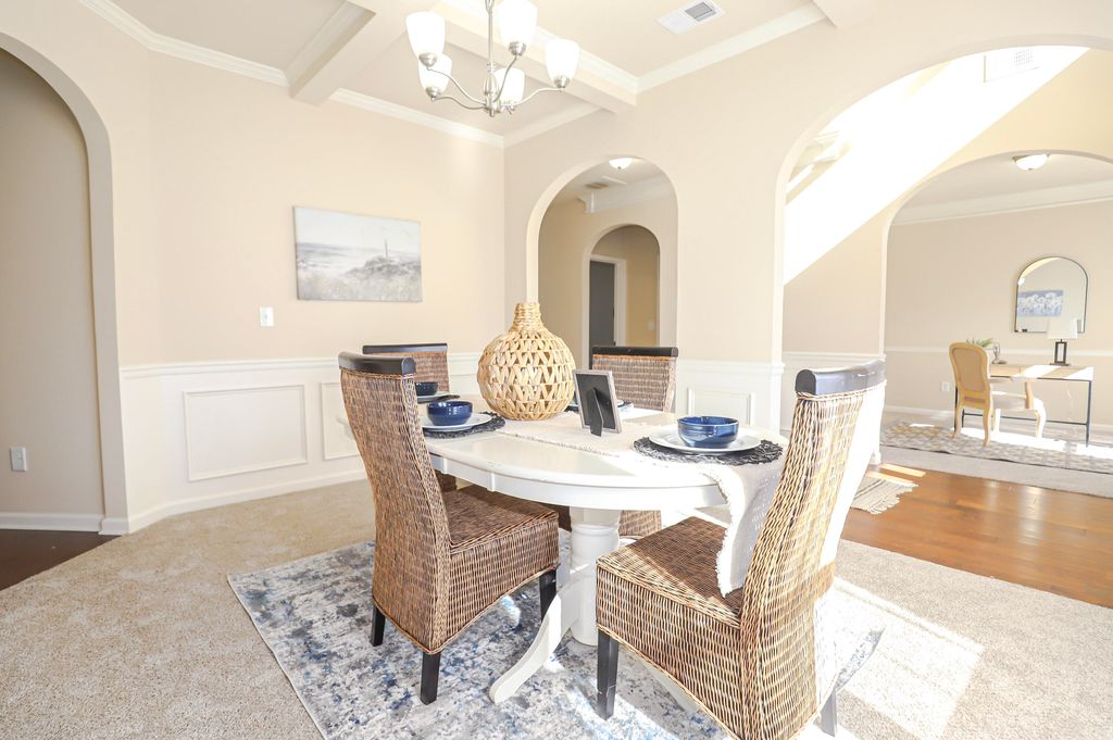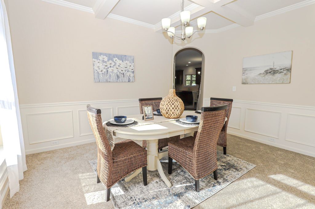 The beautiful Ryan floor plan has 5 bedrooms, 4 baths, 2 car garage, study/living room ,1 bedroom with full bath down stairs,cozy family room with stone wood burning fireplace, formal dining room with coffered ceiling, wainscoting in all the right places just adds a custom classy look to home. Island kitchen with granite counter tops, light pendants, breakfast lounge, pantry, engineered wood floors in foyer,kitchen, and breakfast lounge. Owners suite upstairs with owners tiled bathroom, walk in closet, double sink. Awesome media room for the family.
