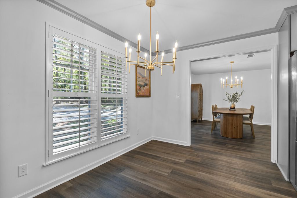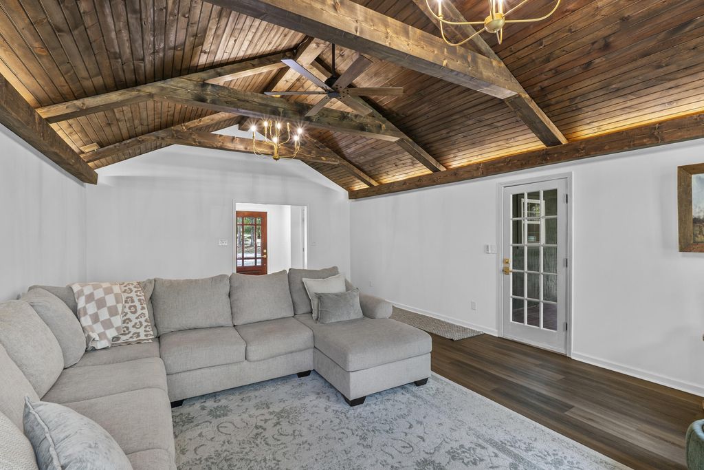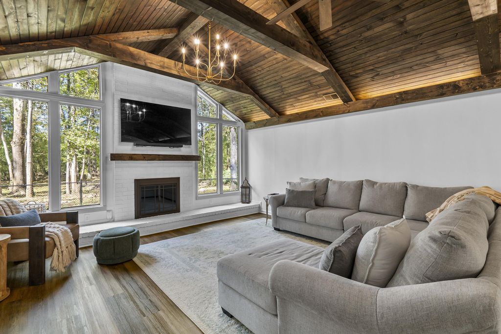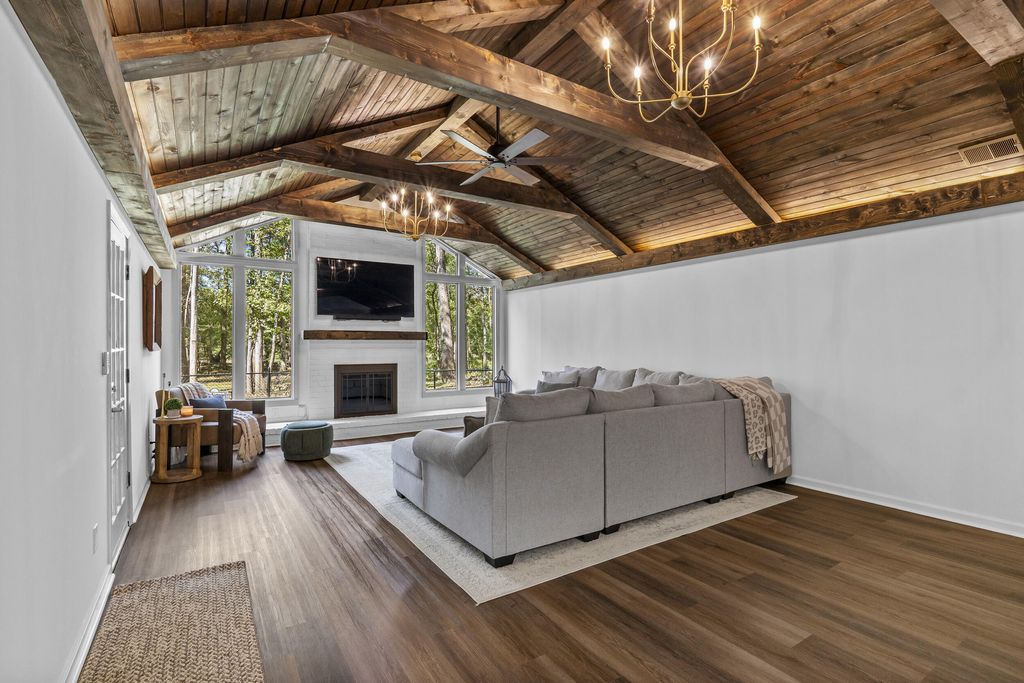 Welcome to 1546 Stevens Creek Rd, a stunning riverfront retreat nestled on 3 acres in North Augusta, SC. This fully renovated 3-bedroom, 2-bathroom home offers 1,671 sq ft of modern elegance surrounded by nature's serenity. Step inside to discover gorgeous hardwood floors flowing throughout, anchored by a breathtaking living room with a wooden gabled ceiling and expansive windows that flood the space with natural light. The kitchen is a showpiece of style and function, featuring modern tile backsplash, solid surface countertops, stainless steel appliances, and polished gold fixtures that add warmth and sophistication. Both bathrooms are spa-inspired, with sleek tile showers, solid surface counters, and matching gold accents that elevate every detail. Every fixture in the home has been thoughtfully chosen to reflect a cohesive, contemporary aesthetic. From the lighting to the hardware, the polished gold finishes create a luxurious yet inviting atmosphere. The bedrooms offer peaceful retreats, each with ample space and serene views. Outside, nature lovers will be enchanted by the mature trees, lush greenery, and the gentle flow of the river just beyond the backyard. Whether you're sipping coffee on the deck, hosting friends under the canopy, or launching a kayak from your own property, this home offers a lifestyle of tranquility and connection. Located just minutes from downtown North Augusta, yet worlds away from the noise, 1546 Stevens Creek Rd is a rare blend of modern design and natural beauty. You'll fall in love with the craftsmanship, the setting, and the soul of this extraordinary home.