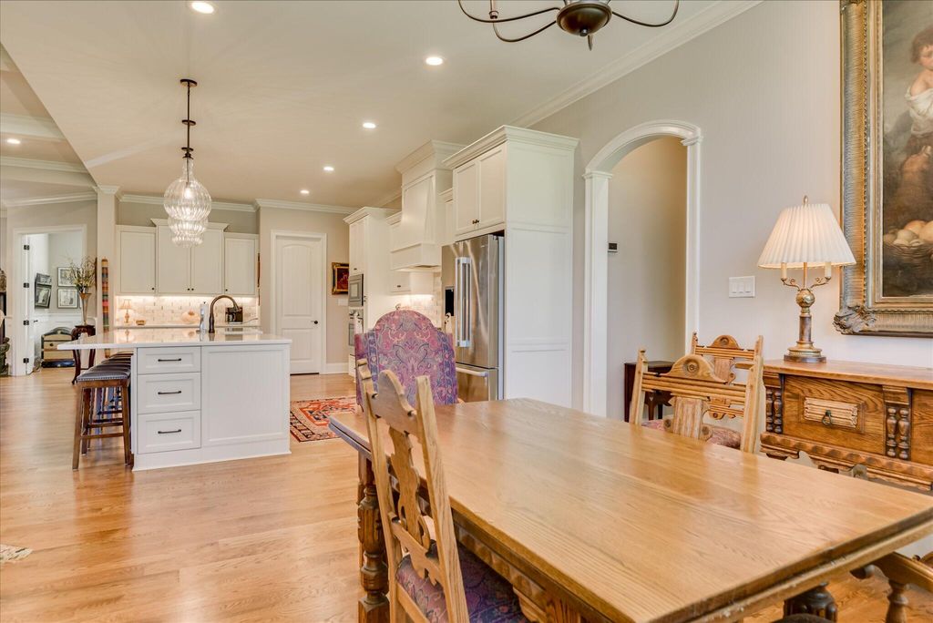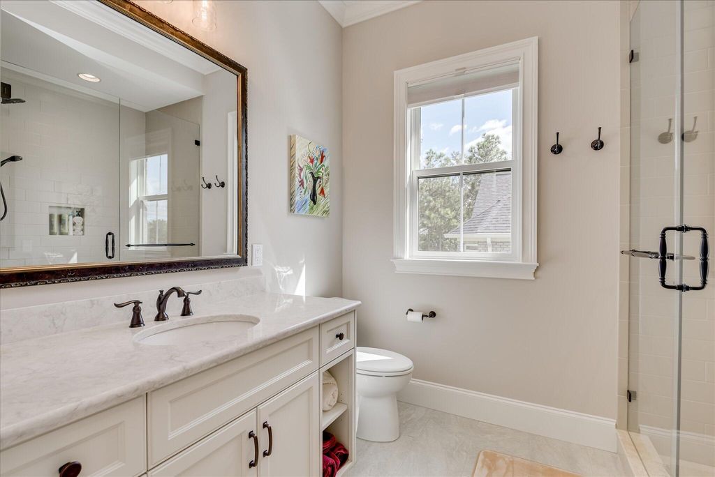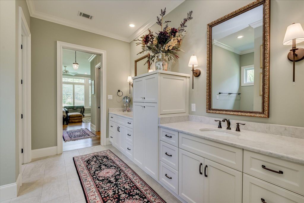 Step into a world of sophistication and unparalleled craftsmanship with this exceptional custom-built home by Designer Builders. Completed in 2022 and spanning 3,051 square feet, this meticulously designed residence is nestled in the highly sought-after Reserve at Woodside community. Offering a seamless blend of timeless elegance and modern comfort, this one-level home is positioned to capture breathtaking views of The Hollow Creek Preserve Course, creating an idyllic setting for refined living. Upon arrival, the home immediately impresses with its striking curb appeal, featuring a beautifully crafted brick and stone façade, classic carriage-style 3-car garage doors, and expertly landscaped grounds. Inside, soaring ceilings and rich hardwood floors set the tone for the entire home, providing a sense of warmth and grandeur. The inviting foyer opens to a private office and leads into a spacious great room that effortlessly connects to the gourmet kitchen and dining area, ideal for both intimate gatherings and larger-scale entertaining. The chef's kitchen is a true standout, showcasing premium quartz countertops, an expansive island with built-in sink, dishwasher, storage, and seating, as well as top-of-the-line stainless-steel appliances, including a gas cooktop, oven, microwave, refrigerator, and a generous walk-in pantry. The adjoining dining area captures sweeping golf course views, setting the perfect stage for unforgettable meals. Adjacent to the kitchen, the laundry room is equipped with a convenient built-in ice maker. The luxurious primary suite serves as a tranquil retreat, offering two large walk-in closets and a spa-inspired bath with custom dual vanities and a walk-in tiled shower. For added convenience, the laundry room is thoughtfully located just steps away from the suite. On the opposite side of the home, two well-appointed guest bedrooms share a beautifully designed full bath, ensuring privacy and comfort for family and visitors alike. Extend your living space to the all-seasons porch, which features polyvinyl windows, a mini-split HVAC system, and brick flooring. A cozy fireplace with a mounted TV completes the space, offering the perfect spot to unwind while taking in picturesque fairway views. Just beyond, a gas-plumbed grilling patio overlooks the meticulously landscaped, fully fenced yard an ideal setting for both relaxing and outdoor entertainment. Additional highlights of this home include a three-car garage with epoxy flooring, a mini-split heat and air system, abundant storage options, and a motorized Majic Attic Lift System, making access to attic storage effortless. The Generac whole-house generator ensures peace of mind during power outages, while leaf guards on all gutters provide maintenance-free protection. With approximately 1,000 square feet of insulated attic storage, this home has been thoughtfully designed to offer both function and style. Residents of The Reserve at Woodside enjoy access to two world-class golf courses, fine dining, tennis, pickleball, and an engaging social calendar. This gated community features over 10 miles of walking trails, lush green spaces, and is conveniently located near shopping, dining, entertainment, and the historic charm of downtown Aiken.