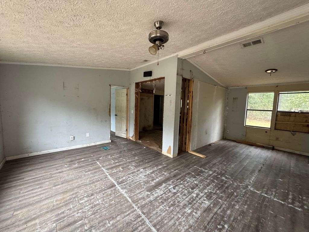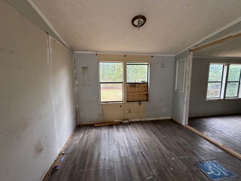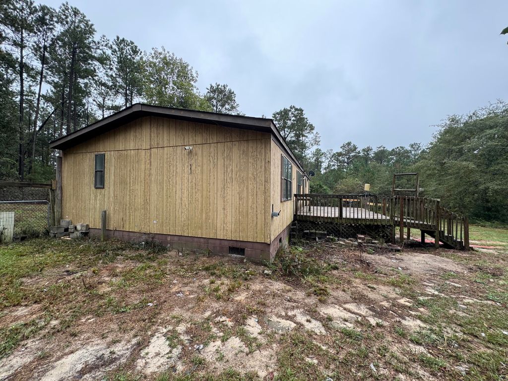 Bring your imagination and toolbox to make this double wide on 5.29 acres your own. No HOA. Large acreage allows you to have a garden and small farm animals! Deck at front of this mobile home. Concrete block foundation. Storage building on site. New rear steps from back door lead to partially fenced back yard. Property has been de-titled.