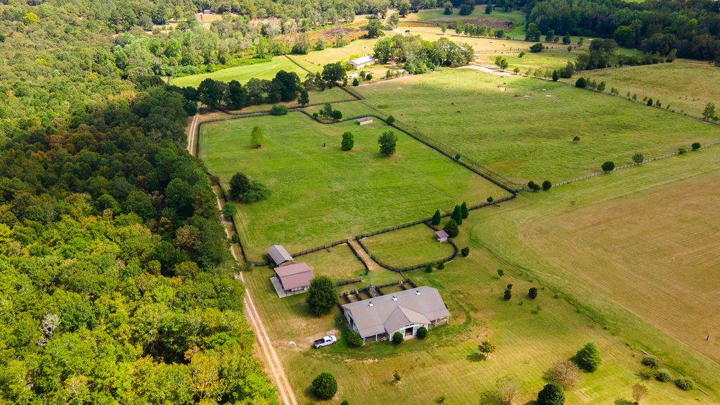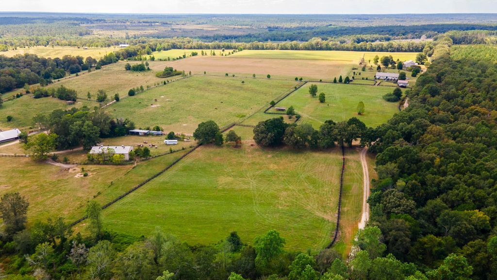 Bitters End Farm - Gorgeous custom home, pool and 7-stall barn are beautifully sited on approximately 48 acres of open fields and fenced paddocks with sweeping pastoral & ridgeline views to enjoy Aiken's equestrian lifestyle. The 4BR/4.5BA residence, built in 2010 by Mitch Johnson, offers quality craftsmanship, high ceilings, hardwood floors, two gas fireplaces and light-filled rooms. The Great Room impresses with vaulted ceilings, a heart pine-mantle fireplace and French doors opening to a gracious covered porch with incredible views overlooking the neighboring polo field. Around to the side of the home, you will be delighted by the privately landscaped saltwater pool with fields & barn beyond. Back inside, a gourmet kitchen features knotty pine cabinetry, leathered granite counters, Whirlpool appliances and a walk-in pantry. For more formal occasions, there is a lovely formal dining room while a separate home office / den offers beautiful built-ins and an inviting place to attend to business or correspondence. The primary suite is found on the main level and includes a sunlit, bay window sitting area, porch access, two walk-in closets, and spa bath with jetted tub and glass-enclosed shower. Three generous guest bedrooms, each with walk-in closets, are located upstairs; one bedroom features a private bath while the other two share a hall bath. A generous 2-room laundry / mud room is found off the back hall between the kitchen and the expansive 2-car garage with extensive built-in storage. Bitters End Farm is all about the equestrian lifestyle and outdoor living. Equestrian amenities include a Tim Zekany-custom built 7-stall barn with a climate-controlled tack room, indoor wash stall with both hot & cold water, a large hay/feed storage room, and a climate-controlled lounge/efficiency apartment with full bath/laundry room. The property offers several newly painted fenced paddocks with run-ins and new fencing. A separate custom-built equipment building offers two garage bays, concrete flooring, loft storage, and covered horse trailer parking to keep everything neat & tidy! During warmer weather, you can enjoy a refreshing afternoon swim in the in-ground saltwater pool (new liner in 2024) after working with your horses in the morning. Sip an iced tea on the back porch while watching polo during the season or a glass of wine while taking in a spectacular sunset. Wherever you are on this gorgeous property, the views are absolutely captivating! The property has been thoughtfully landscaped to maximize the views while providing privacy where needed. The property's structures are outfitted with SMART home security, lightning protection, metal roofs and supported by a 110 GPM well. Estancia Lane is located just minutes from the town of Wagener, SC and is an easy drive to equestrian venues and shopping in Aiken as well as the Columbia, SC airport. Bitters End Farm is truly an exceptional property, combining comfort, function & an idyllic, peaceful ambiance to which to welcome you and your horses home!