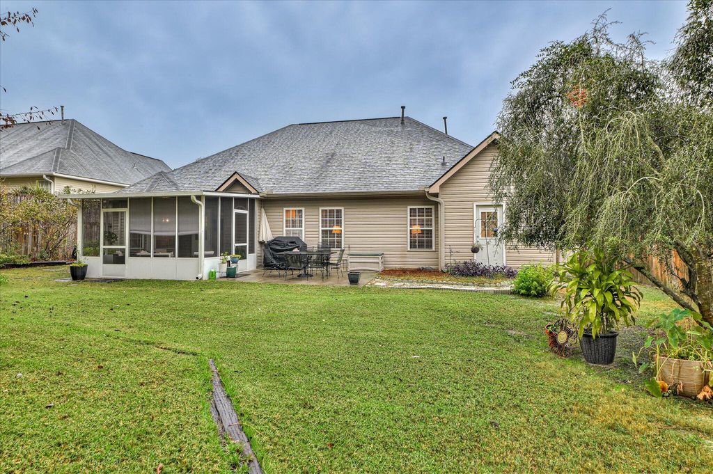 Welcome to this beautifully updated 3-bedroom 2-bath home that combines modern comfort with timeless appeal. Step inside to find brand new luxury vinyl plank flooring and fresh interior paint, creating a clean and cohesive look. The kitchen features granite countertops, a tile backsplash, stainless-steel appliances and a pantry for ample storage. The wrap-around bar and breakfast area offer plenty of seating, making it ideal for casual dining. The adjoining dining room is perfect for larger family gatherings and hosting guests. Enjoy the primary suite complete with a large walk-in closet and an updated en-suite bathroom featuring a spacious walk-in shower with updated fixtures. Relax in the inviting living room with vaulted ceilings and a cozy gas log fireplace. The versatile bonus room provides extra space for a home office, den, or play area. With an abundance of closet space throughout the home, including a walk-in attic for additional storage, you'll never run out of room for your belongings. Step outside on the screened-in porch that overlooks the extended patio and private backyard to enjoy some outdoor dining or quiet mornings. You will also find a new roof, 2-car garage, and sprinkler system. The well-designed layout of this home maximizes space and comfort and has everything you need. Located just off I-20 in a fabulous neighborhood with fountains, trails, picnic area, beach, and several lakes for all residents to enjoy. Schedule your showing today and see all the wonderful details for yourself!