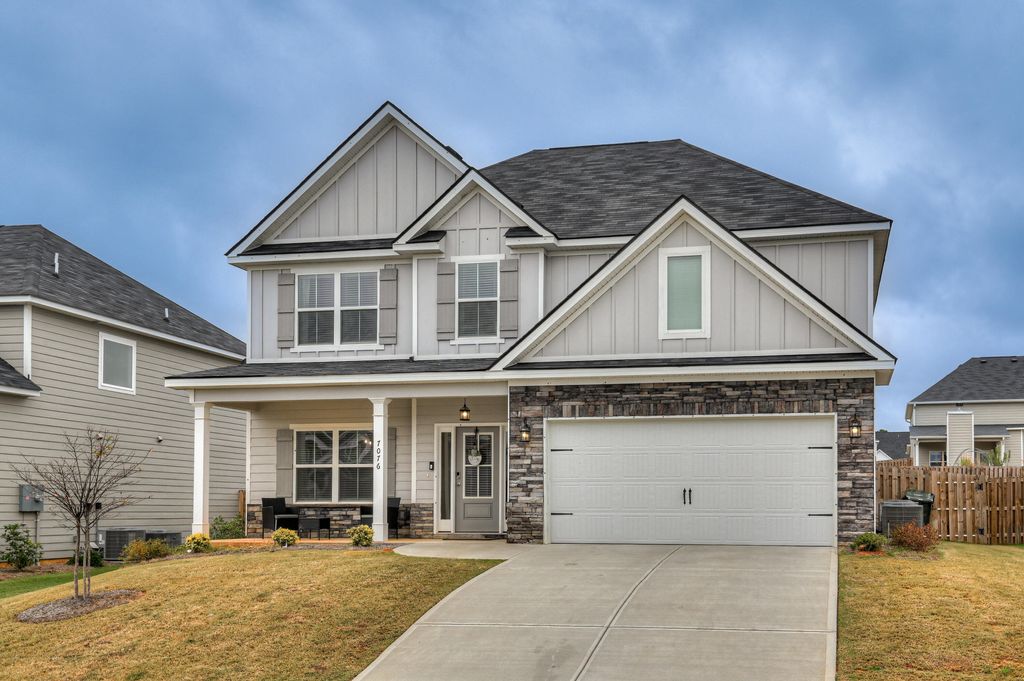 Welcome to 7076 Kingburgh Ln in North Augusta's desirable Austin Heights community! Built in 2023, this beautiful 5-bedroom, 3-bath home offers 2,628 sq ft of modern living space. The open-concept main level features a stylish kitchen with granite countertops, stainless appliances, and an eat-in area overlooking the family room. A versatile main-floor bedroom is perfect for guests or a home office. Upstairs, enjoy a spacious owner's suite with a walk-in closet and private bath, plus three additional bedrooms and a full bath. Outside, relax on the covered front or back porch and take advantage of the two-car garage. Conveniently located near schools, shopping, and quick access to Augusta. Move-in ready and filled with upgrades "” don't miss this one!