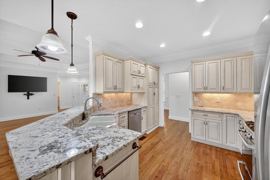 This is a custom built Wolfe home - one owner. Home is perfectly placed on ½ ac to take advantage of the open space, nature trail and a private pond which borders the property. You'll enjoy the beautiful views of pond with fountain and open space throughout the year. The floor plan offers a semi-open concept with great room and formal dining area. Great room features trey ceilings, recessed lighting, and French doors leading to sunroom. Another set of French doors lead to office. The formal dining area is enhanced with picture frame paneling, and a cherry-colored hardwood floor border. The updated kitchen offers granite countertops, stainless appliances, stone tiled backsplash, pantry, cabinets with pull-out shelving, snack bar and 9 x 12 breakfast area. The primary bedroom is a spacious 20 x14 with trey ceiling. The primary bath offers double sinks, granite countertops, a walk-in glass shower, separate tub, private water closet area and his & her walk-in closets. A second bedroom, a second full bath and laundry, are on the opposite side of the first floor. On the second level is the 3rd bedroom/bonus room with a full bath, a large clothes closet, and storage area. The second level is serviced by a mini-split HVAC for efficiency. Also serviced by its own mini-split is the 17 x 20 sunroom which displays a stamped concrete floor and full wall glass windows to enjoy the back park-like setting. A backyard stamped concrete patio offers an outdoor area with natural gas for grilling. Castlesteads Drive is located in ''Aiken's Choice'' Cedar Creek. Amenities include golf, tennis, swimming, pickleball, community center, walking trails, nature trails, mini parks, and ponds. County taxes only.