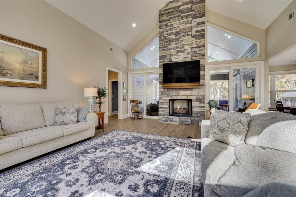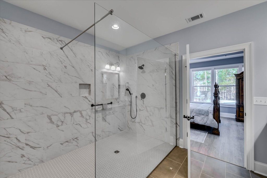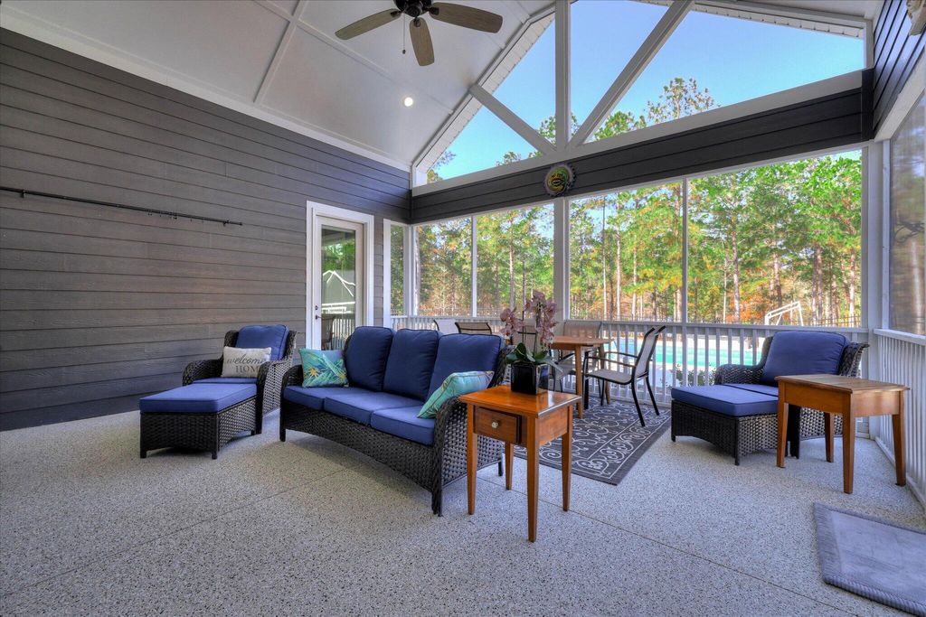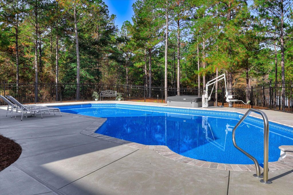 Address is 1066 Pine Point Lane TIGNALL Ga 30668 -Stunning lakefront home custom built on 3.21 acres featuring a hardie board exterior and an inviting open floor plan designed with ADA considerations. Enjoy relaxing on the charming front porch or the expansive screened back porch overlooking the saltwater pool, hot tub, and the serene shores of Clarks Hill Lake with a private dock. The high end kitchen impresses with premium finishes, a spacious multi-use pantry, double ovens, and a cleverly designed hidden office tucked neatly within the kitchen area. The property offers exceptional storage and workspace with an oversized 3 car side entry garage plus a detached 30x42 garage/multipurpose building complete with a 12x14 floored attic. An iron fence with an electric entrance gate surrounds the property and the front entrance is equipped with lighting and security cameras for added convenience and peace of mind. A truly beautiful property and home, perfect for those seeking privacy, luxury, and lakefront living.