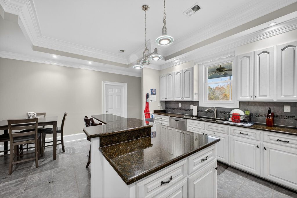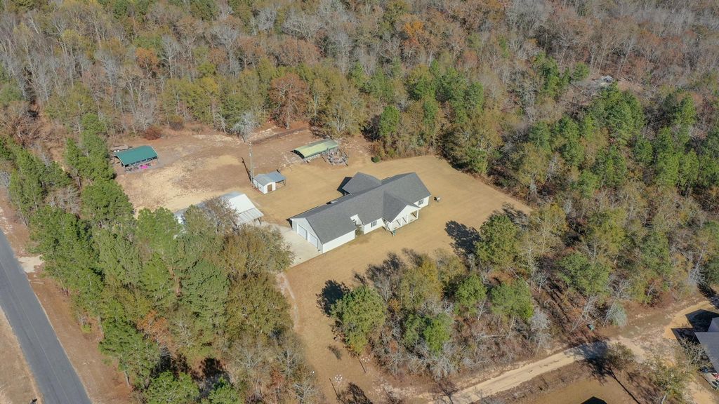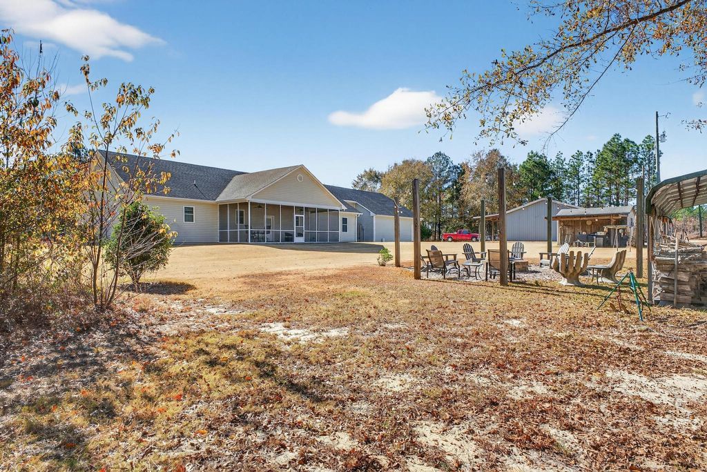 ELEGANT COUNTRY LIVING ON 8 ACRES! This spectacular property is located 3 miles off Hwy 302 between Wagener and Pelion in Aiken County. Surrounded by woods on 3 sides, this retreat offers privacy and quiet. Built in 2011, the immaculate home has over 2800 sq. ft. of stylish design with heavy moulding, 10 ft. ceilings and stunning hardwood floors. The split-bedroom layout features a master suite with a huge closet and spacious bathroom at one end of the home and 2 bedrooms and bathroom with garden tub at the other. The common areas in the middle of the home include a gourmet kitchen with granite countertops and plentiful cabinets, a beautiful dining area and a family room with built-ins. Enjoy the luxury of a dedicated laundry room. A screen porch flanks the rear of the house where you overlook the nearby fire pit. There's a 1200 sq. ft. heated man cave with a full kitchen and half bath in addition to a 900 sq. ft. shop. Plenty of space for animals and a garden