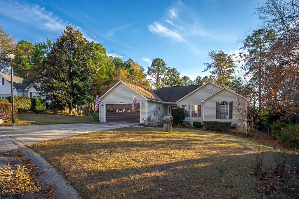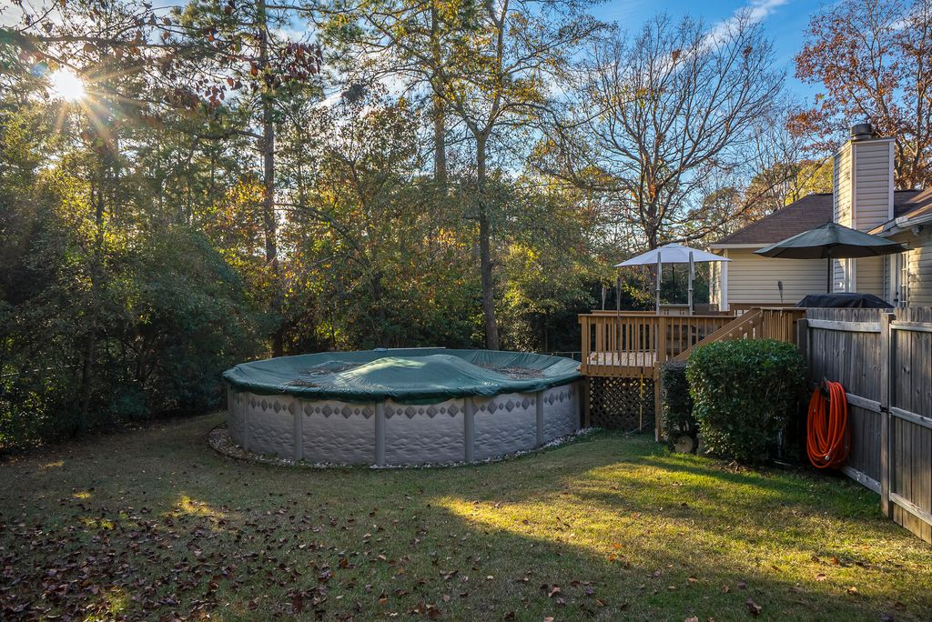 Beautiful updated home in Sandstone, convenient to southside Aiken and 10 minutes from downtown! This three bedroom, two bath home features numerous updates, including the following: quartz countertops in the kitchen; newer kitchen sink and faucet with disposal; new microwave, stove and refrigerator; wood flooring throughout the living area and primary bedroom; new HVAC in 2024; gutter guards and sprinkler system. There is a breakfast area with chair rail, pantry, separate dining room, living room with remote gas fireplace, primary suite with dual sink vanity, large tub with separate shower and an expansive walk-in closet, two guest bedrooms with carpet and a hall bath. Venturing into the backyard you will find a screened porch with a new storm door and ceiling fan as well as a huge deck overlooking the private fenced-in backyard, complete with a 24-foot above ground pool - your own little oasis! There's also a community pool to enjoy.
