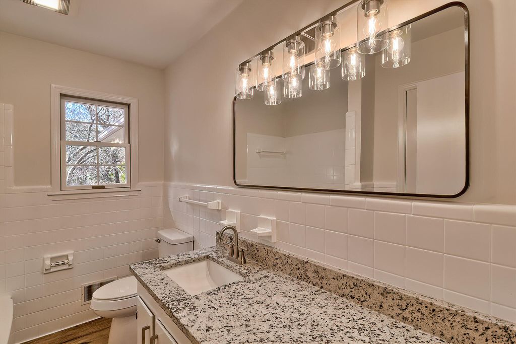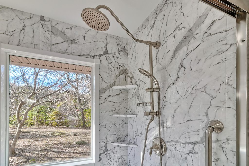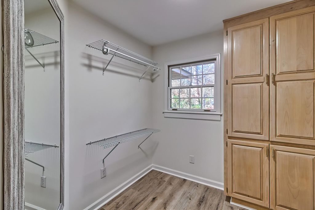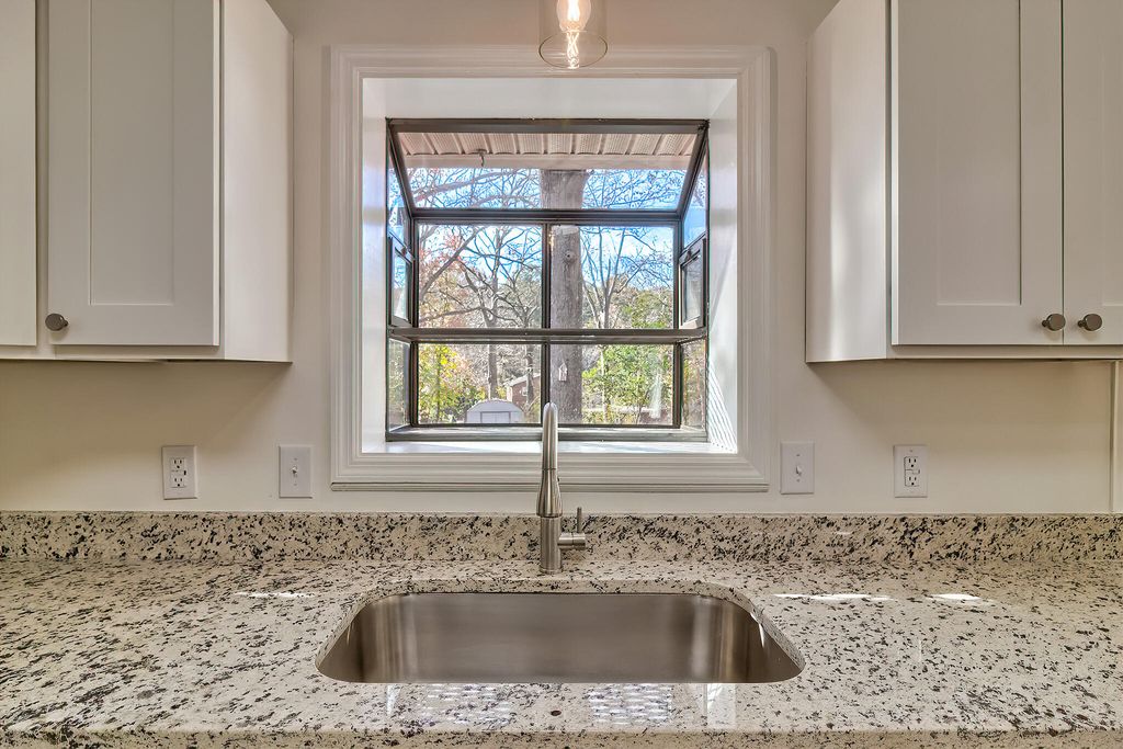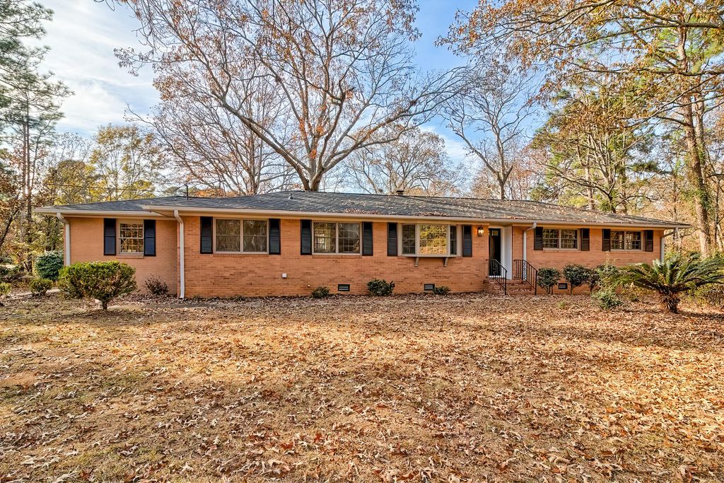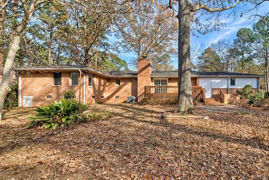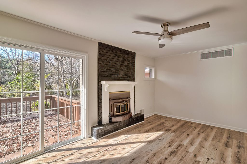 Beautifully renovated 3BR/2BA brick home on 1.02 peaceful acres. This move-in-ready one-story home features a brand-new roof, new HVAC, updated electrical, fresh ceilings, and new LVP flooring throughout. The fully updated kitchen includes new cabinets, granite backsplash, and stainless-steel appliances. A large bay window brightens the living room, while the den features a cozy wood-burning fireplace and panoramic sliding door leading to a spacious back deck. Outside, enjoy an attached garage with workshop/storage room, two carports (one in front, one in back), plus two storage sheds. Mature trees, blooming landscaping, and a decorative pond with fountain create a relaxing outdoor setting.